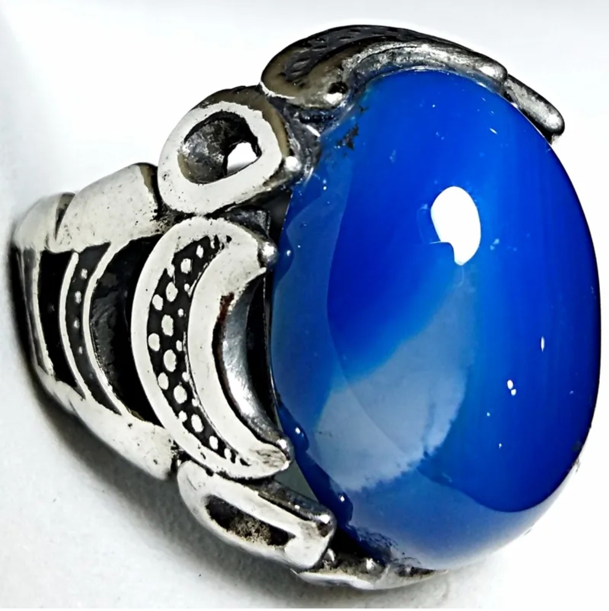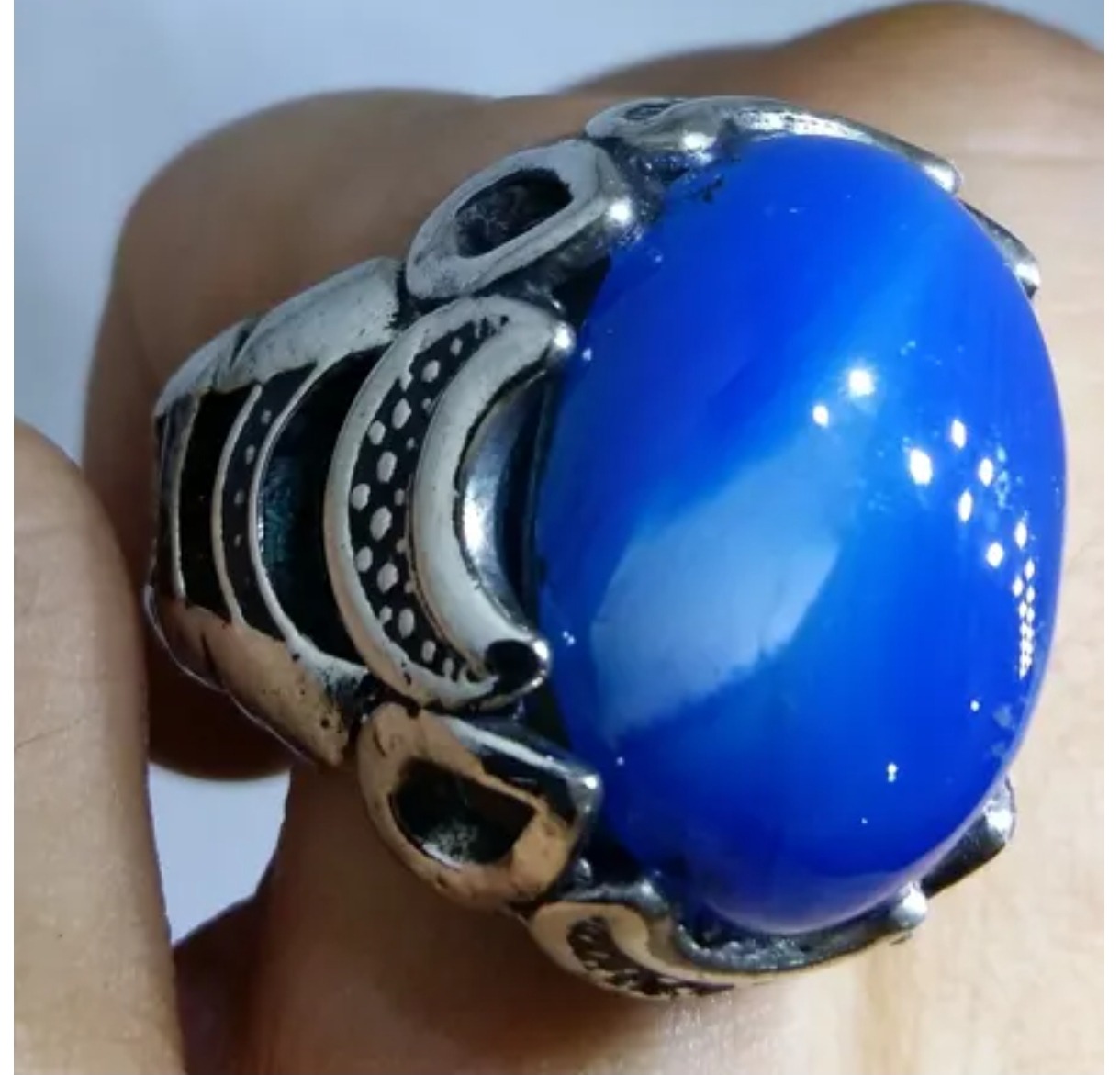 انگشتر نقره با ی رکاب فوقالعادهزیبا با نگین عقیق آبی آبدار یه رنگ خیلی خاص یه کار خیلی خفن فوقالعاده سنگین ولی با این حال یه کار شیک ازتون خواهش میکنم منصفانه برادرانه خواهش میکنم منصفانه قیمت بدید دمتون گرم راضی به ضرر کسی نشید هر مغازه ای بری فقط نگینش رو باید پونصد هزار تومان بخرید چه برسه به رکابش پس لطفاً درست قیمت بزارید که منم بتونم براتون ارسال کنم الان فقط ارسالش صد هزار تومان باید از جیب بدم