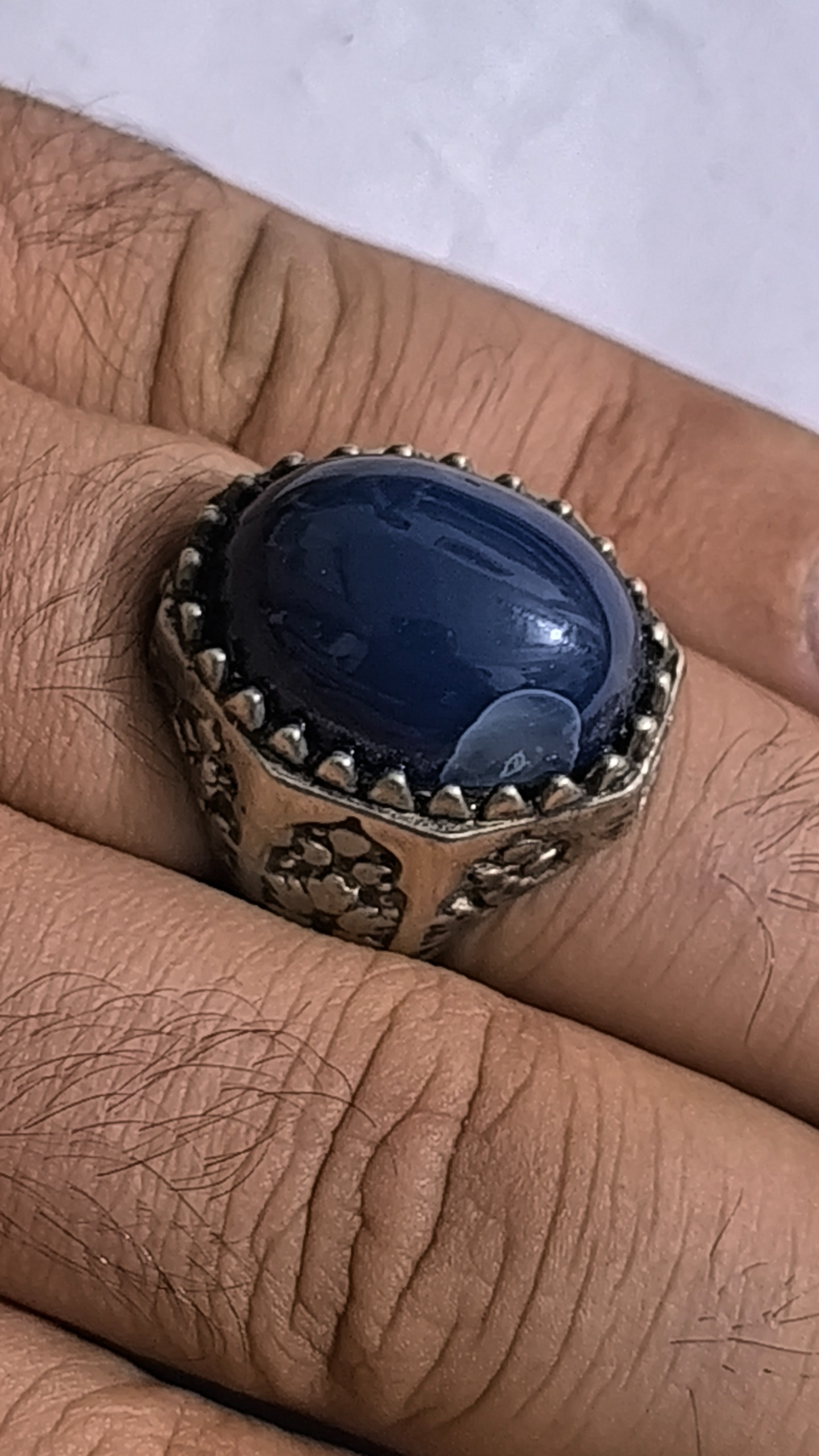 انگشتر نقره با یک نگین عقیق آبی خاص