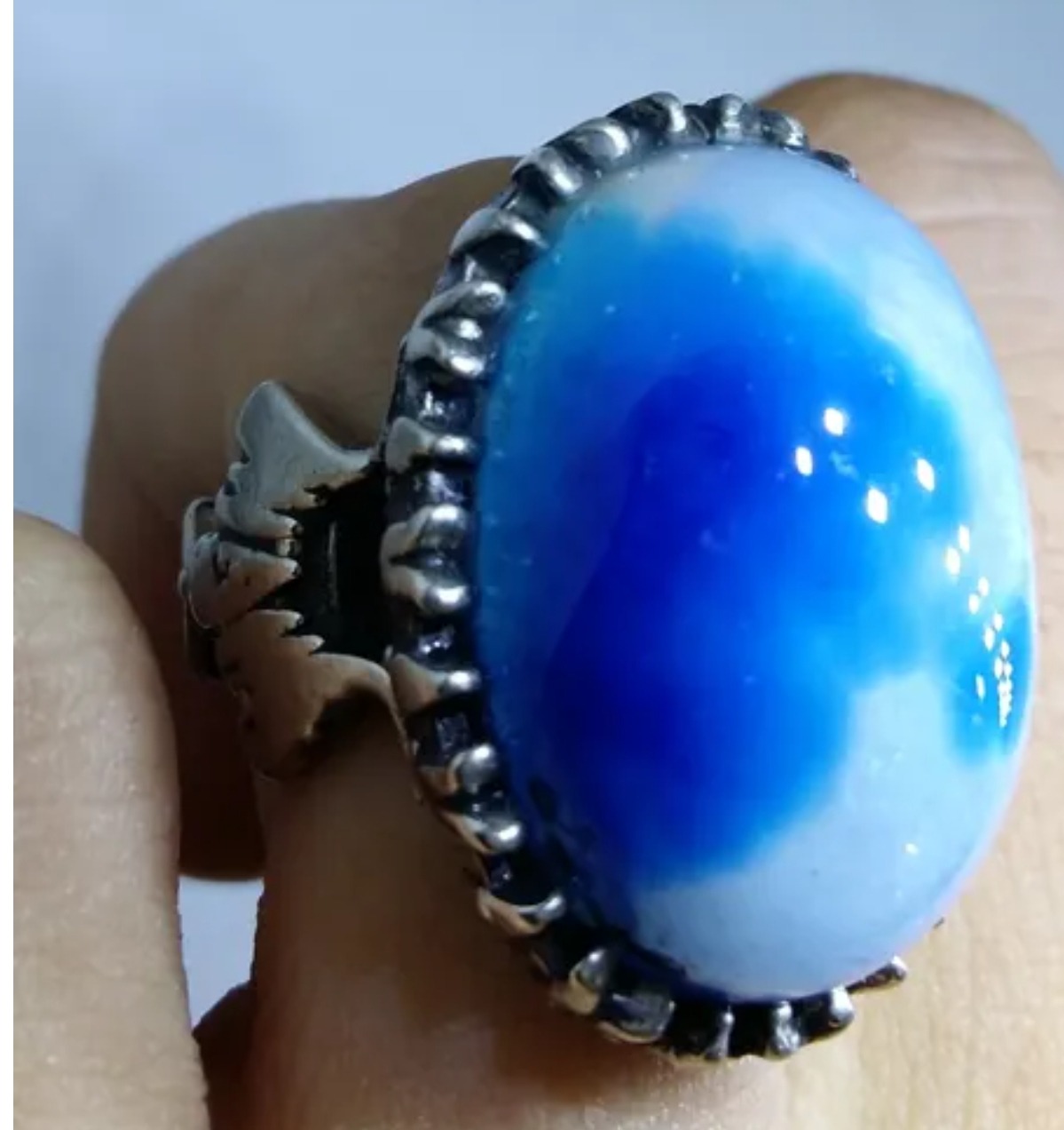 انگشتر نقره با ی رکاب فوقالعادهزیبا با نگین عقیق آبی آبدار یه رنگ خیلی خاص یه کار خیلی خفن فوقالعاده سنگین ولی با این حال یه کار شیک ازتون خواهش میکنم منصفانه برادرانه خواهش میکنم منصفانه قیمت بدید دمتون گرم راضی به ضرر کسی نشید هر مغازه ای بری فقط نگینش رو باید پونصد هزار تومان بخرید چه برسه به رکابش پس لطفاً درست قیمت بزارید که منم بتونم براتون ارسال کنم الان فقط ارسالش صد هزار تومان باید از جیب بدم