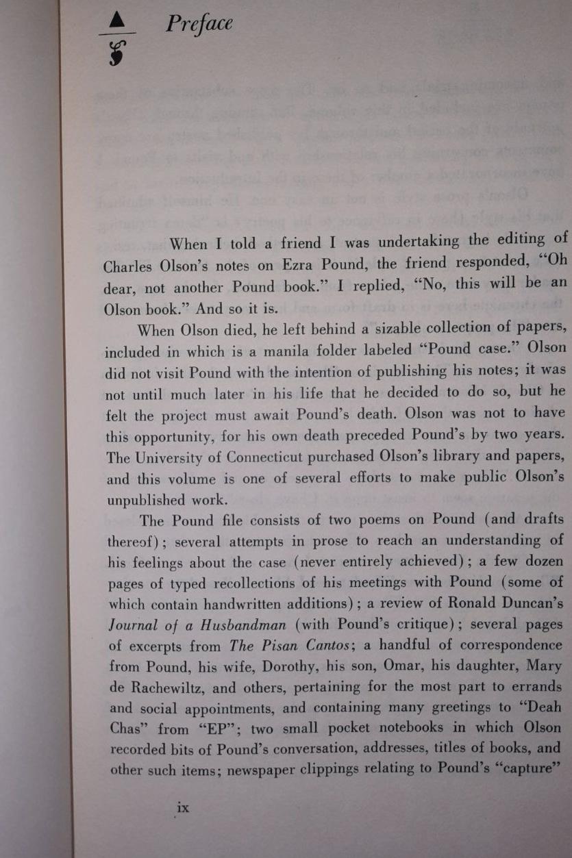 Charles Olson & Ezra Pound An encounter at St. Elizabeths | Charles Olson | Edited by Catherine Seelye | 150 Pages | Grossman, 1975.