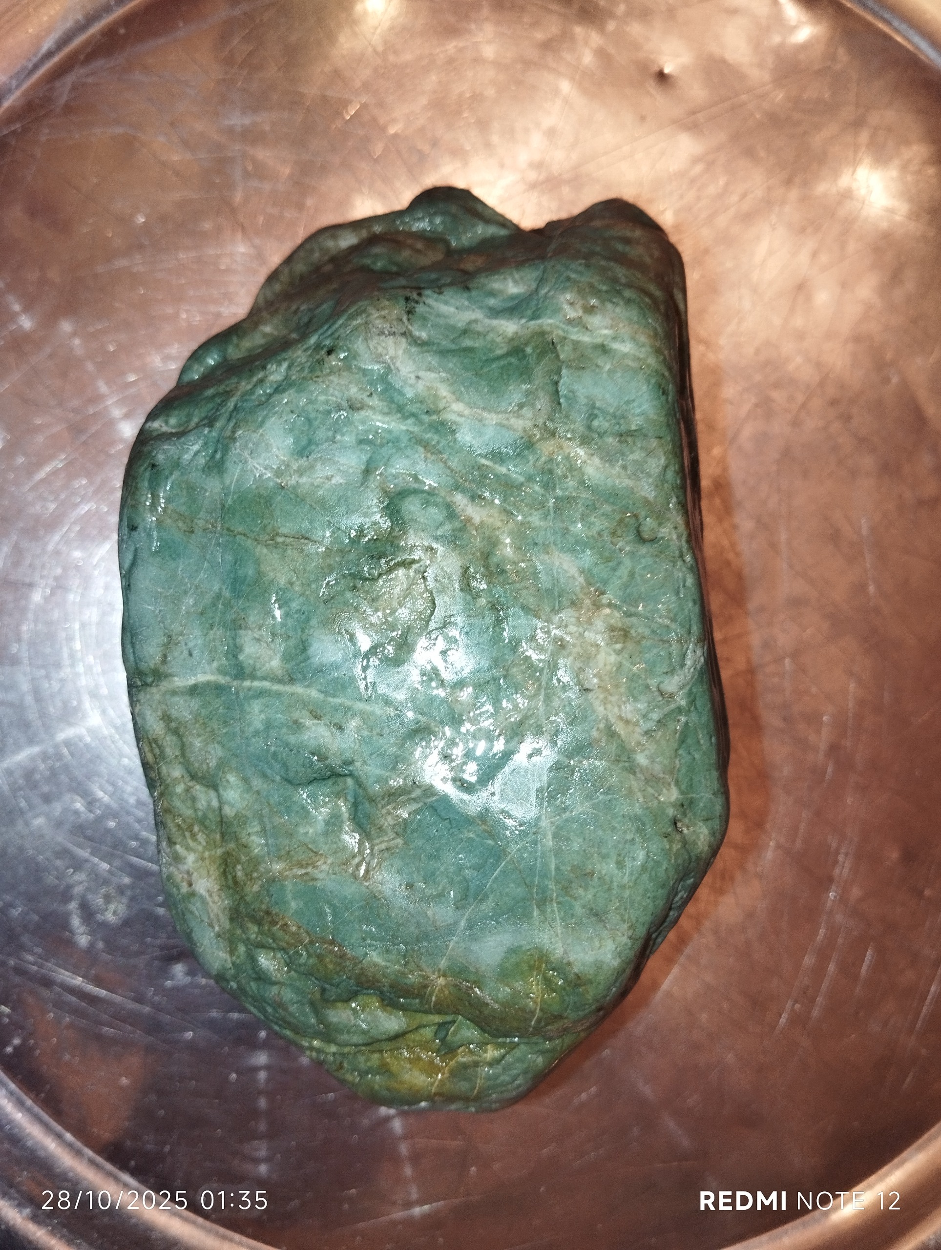 سلام...سنگ یک تیکه و زیبا بدون دست خوردگی.وزن این سنگ(1کیلو و850گرم است)یشم سبزدوستان علاقمند بنده درخدمت شما هستم.البته نمونه های بی تکرار دیگری برای فروش موجود هست.ممنون از شما دوستان