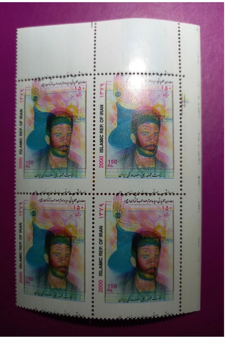 تمبر ارور 150 ریال گوشه باند دپلاسه رنگ هاودندانه