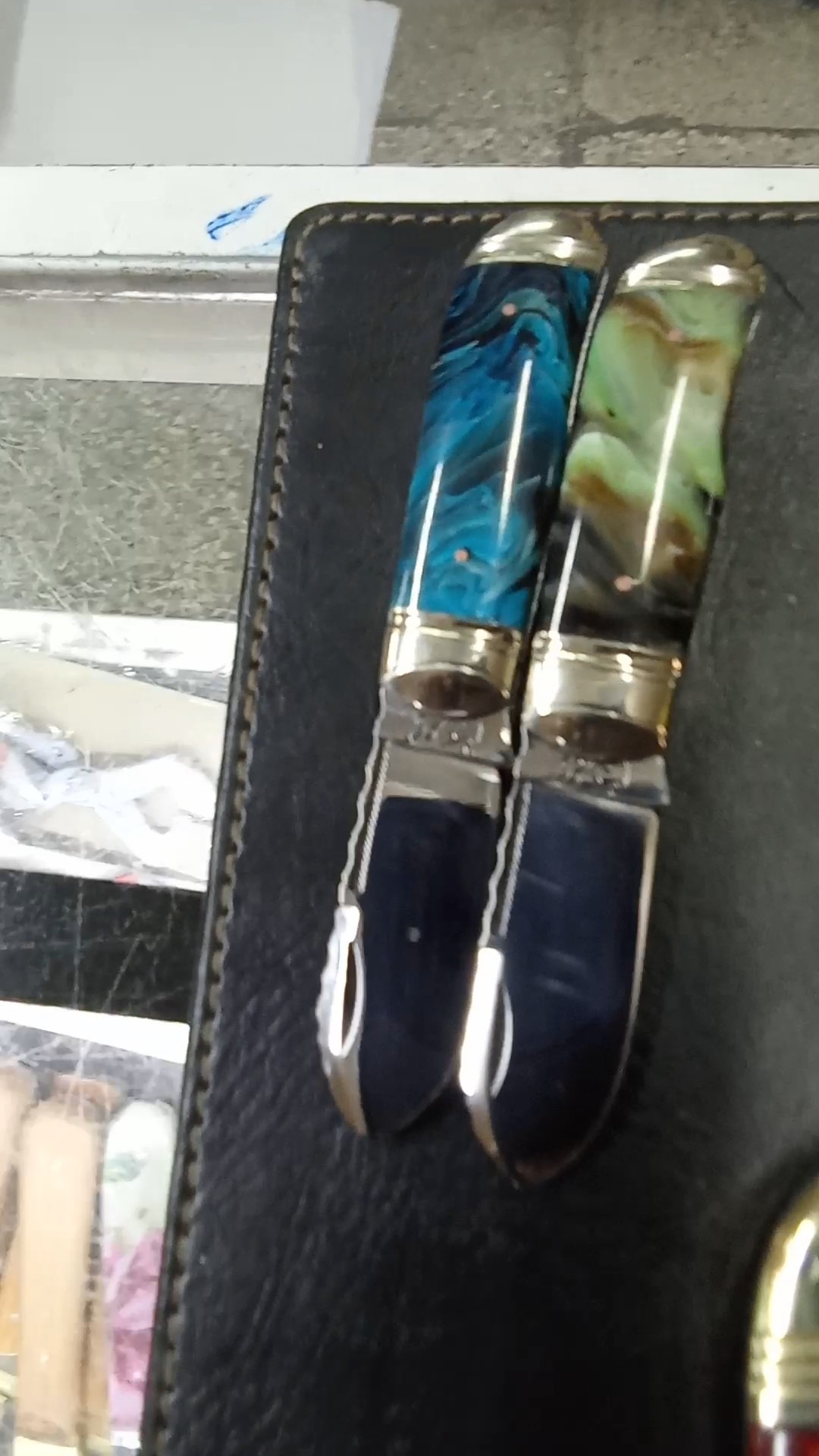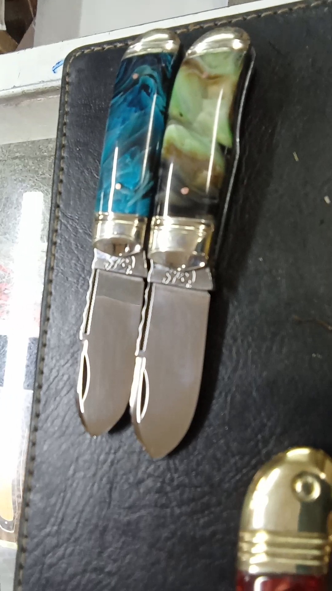 چاقو فوق کلکسیونی وزیباسایز16سانت وتپل وجمع وجور وخوشدست دسته کهربا اصل شمش ضخیم وتیغه فولادsابدیده آتشکاری وچکشکارییشده تیزوبرا تضمینی فنر قوی پرتاب تیغه موقع بازوبست بصورت شلاقی عمل میکند بدون درزولقی کیپ وبدون ایراد ازهرلحاظوسایز14سانت نیز بقیمت1900تقدیم میشود