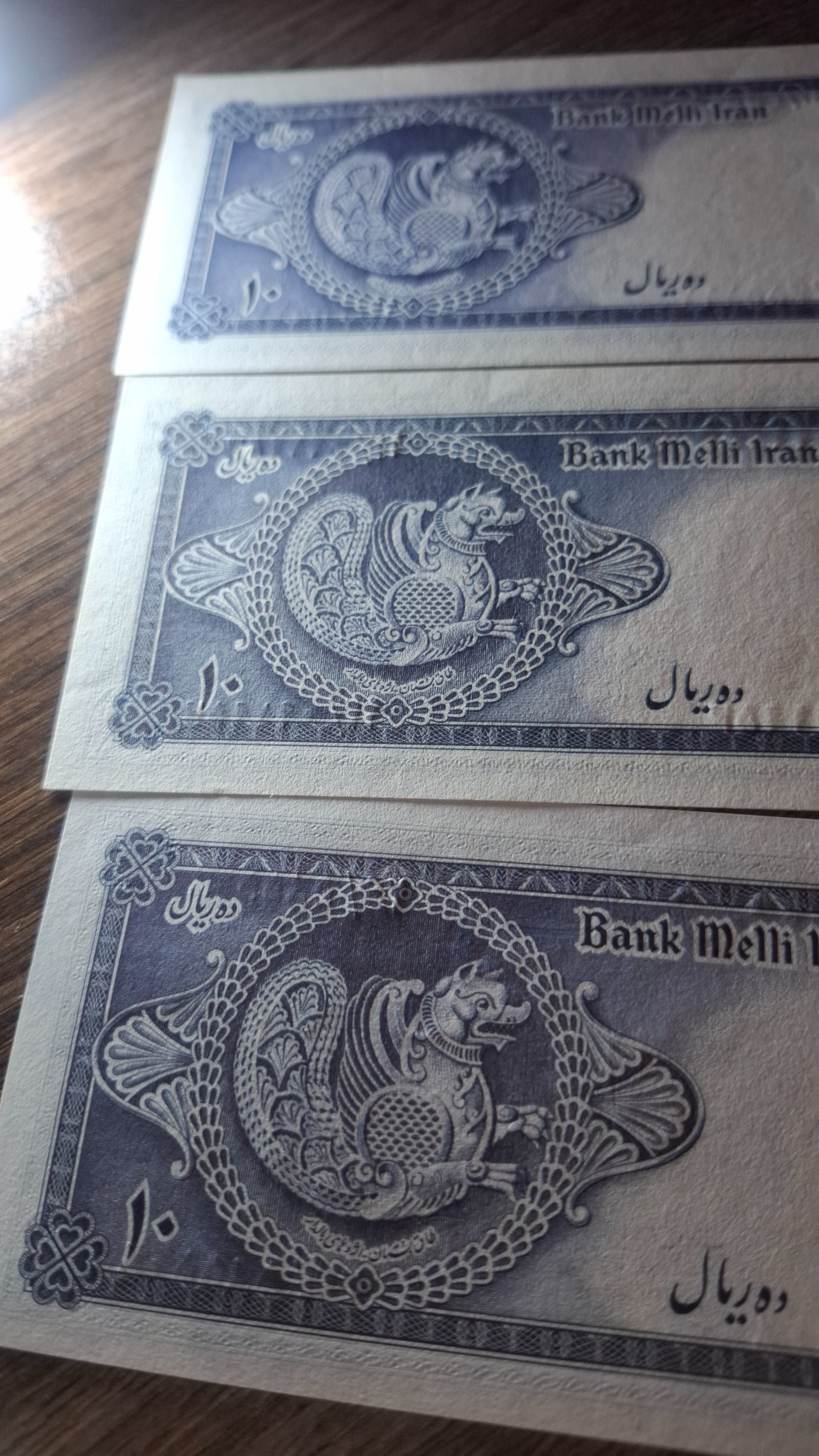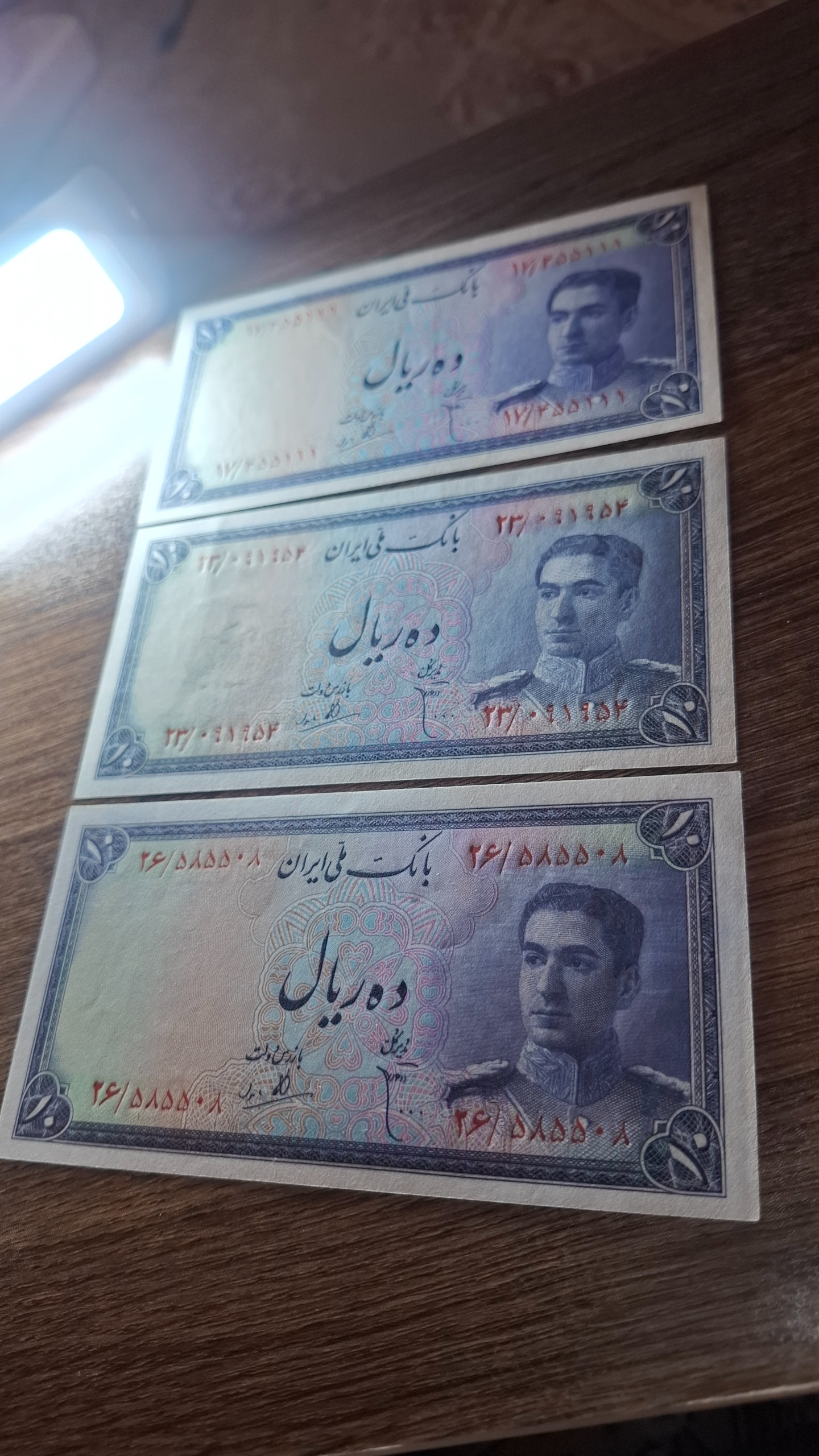 سه برگ اسکناس ده ریالی محمدرضاشاه