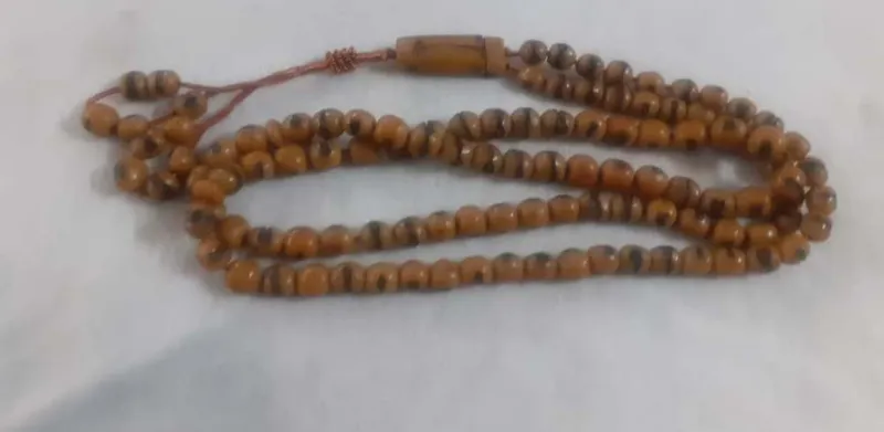 _ تسبیح هسته خرما قدیمی 101 دانه مال حدود 25 سال قبل / معمولا این کار توسط زندانیان و توسط دست درست میشه و جزو صنایع دستی است