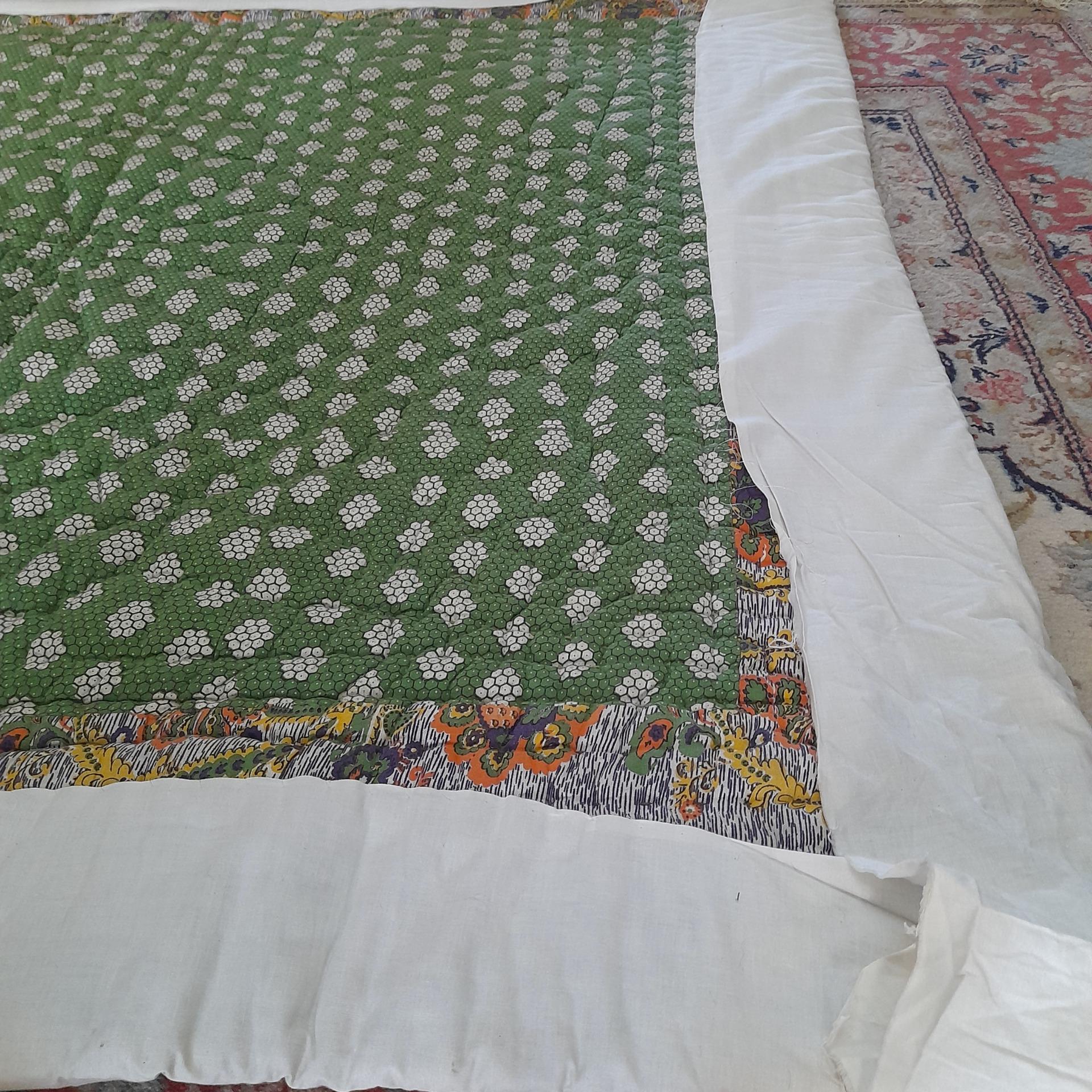لحاف دستدوز قدیمی ابعاد 140 در 150 هستش فکر میکنم برای رو لحاف کرسی بوده