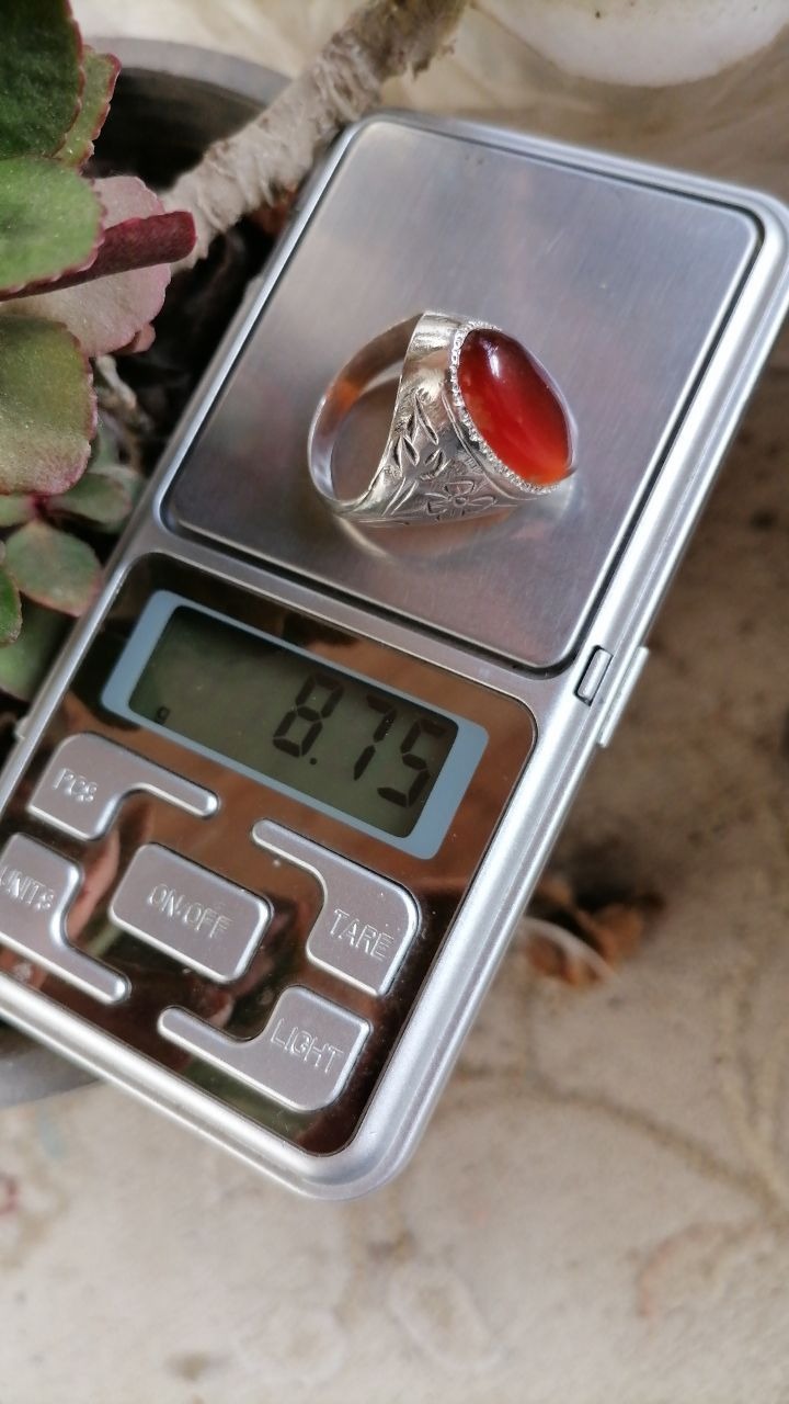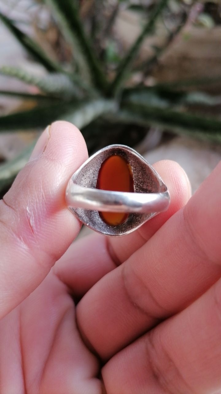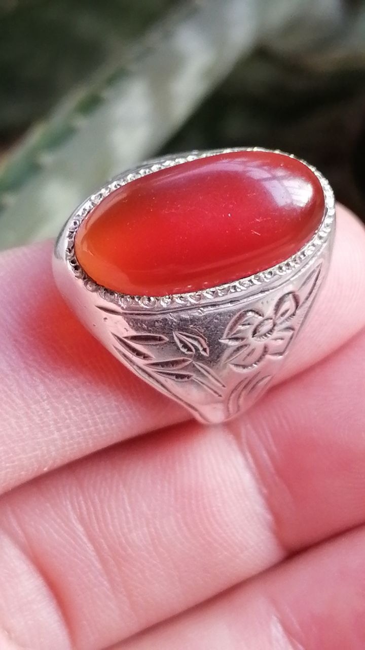 انگشتر نقره عقیق یمنی پرتقالی دستساز وقلم زنی قدیم سایز 65تا66وزن8.75گرم ابعادنگین 2در1سانت قیمت 2100