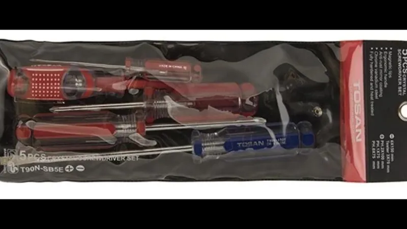 مجموعهای که در تصویر مشاهده میکنید شامل چهار پیچ گوشتی و یک فازمتر میشود. این مجموعهی پنج عددی به شما کمک میکند تا بسیاری از پیچهای دوسو و چهارسو را باز کنید. در این مجموعه سه عدد پیچگوشتی چهارسو در سایزهای PH0 , PH1 , PH2 وجود دارد. پیچ گوشتی دوسوی این محصول سایزی برابر 150 × 6 دارد. با کمک فازمتر کوچک این محصول نیز میتوانید جریان فاز را بهراحتی تشخیص دهید. جنس سری بهکار رفته در پیچ گوشتیها از نوع کروم وانادیوم است که مقاومت بالایی دربرابر ضربه و فشار دارد و بهراحتی دچار خوردگی نمیشود. از دیگر نکات مثبت این مجموعه میتوان به قابلیت آهنربایی آن اشاره کرد. این قابلیت در کار کردن با پیچها کمک زیادی به کاربر میکند. محصول فوق با نام «T90N-SB5E» شناخته میشود. شرکت «توسن» (Tosan) این محصول را به بازار عرضه میکند. بههمراه داشتن این ست پنج عددی کمک زیادی برای باز و بسته کردن پیچها خواهد کرد.