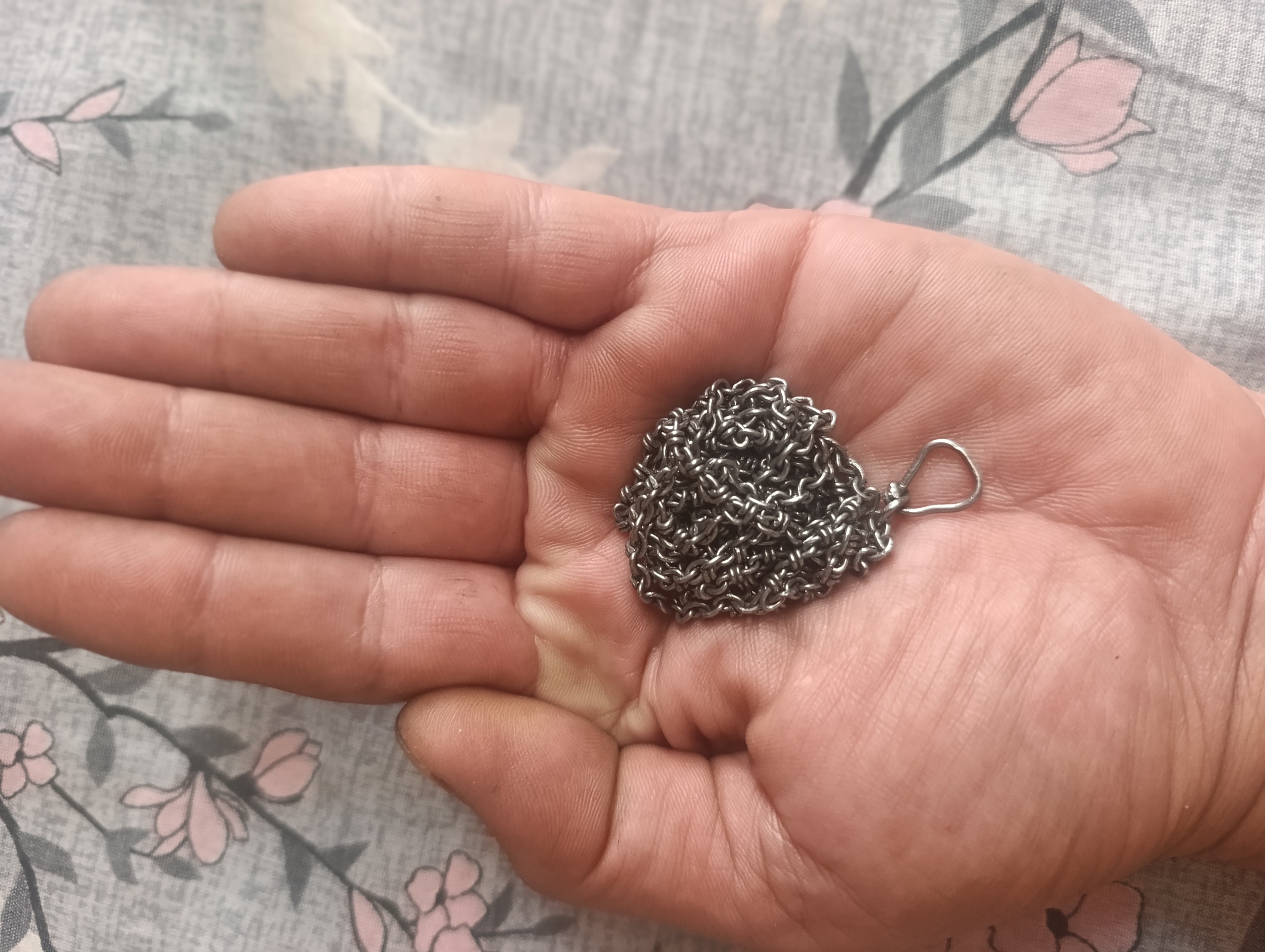 زنجیر سایز ریز معروف به غلوم بافت بکر بکر ریز ترین سایز بافت هست که بهش میگن زیر زبونی یا قوطی کبریتی ساختش خیلی زمان میبره به خاطر ریز بودن دونه ها قیمت هر عدد 500