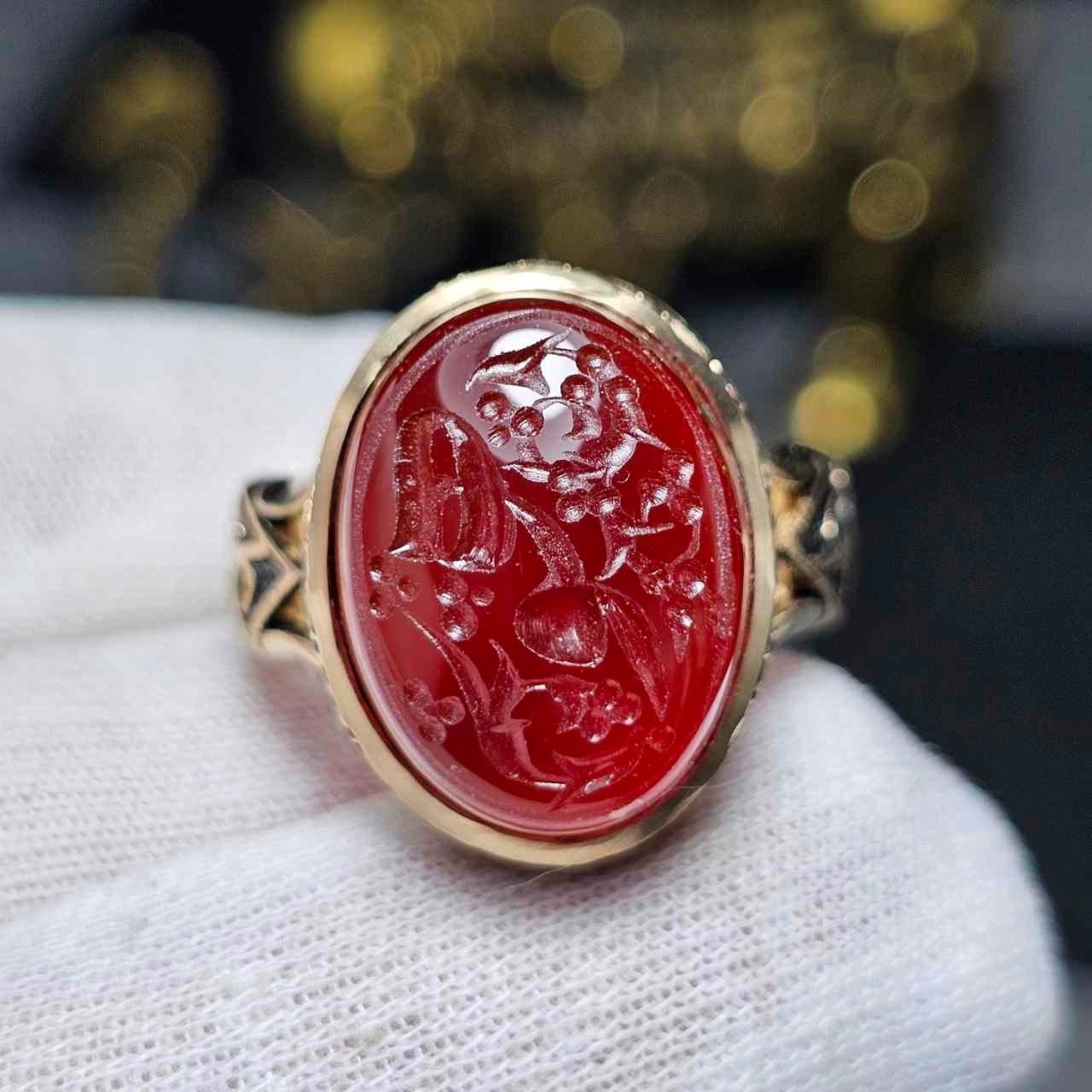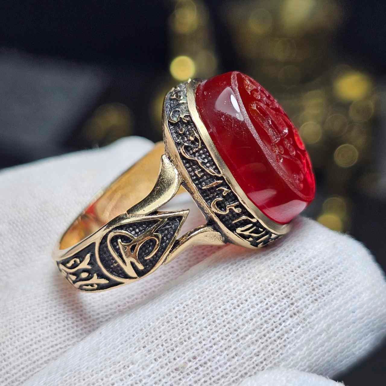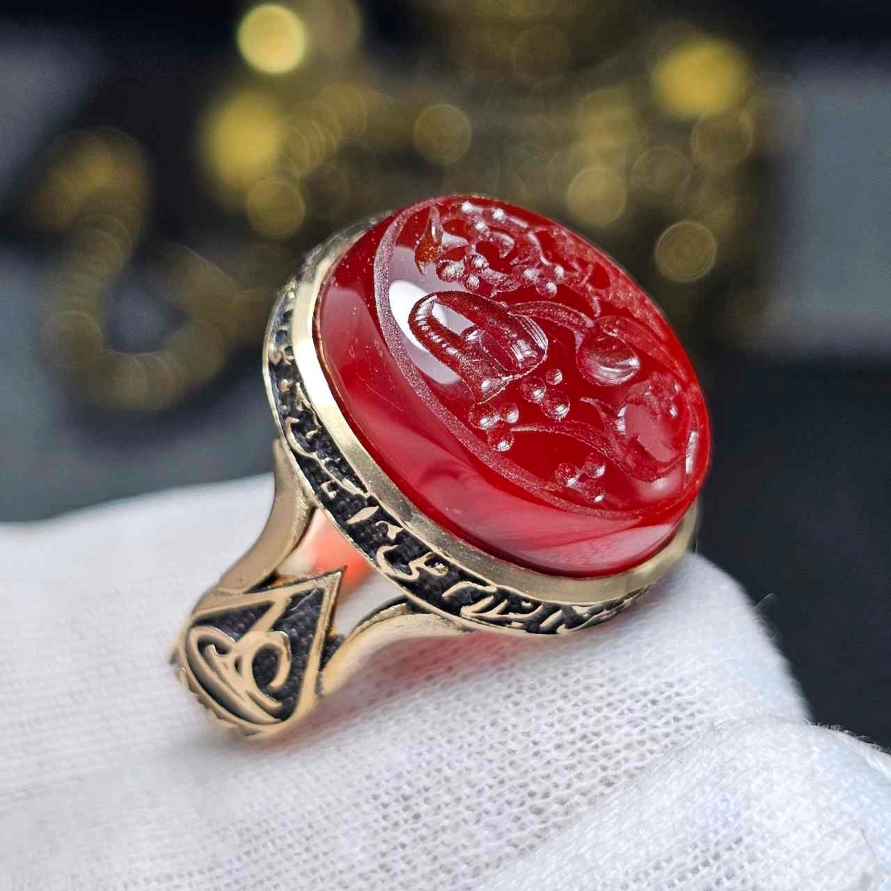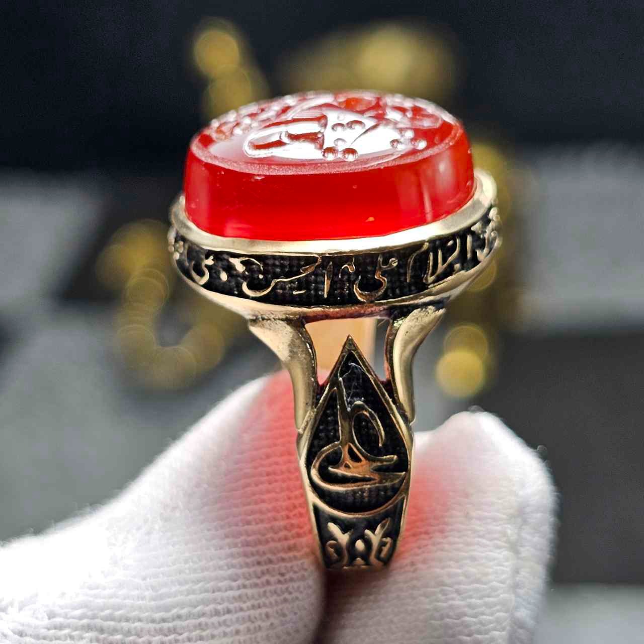 انگشتر طلاروس با عقیق سرخ معدنی خط دست 36560