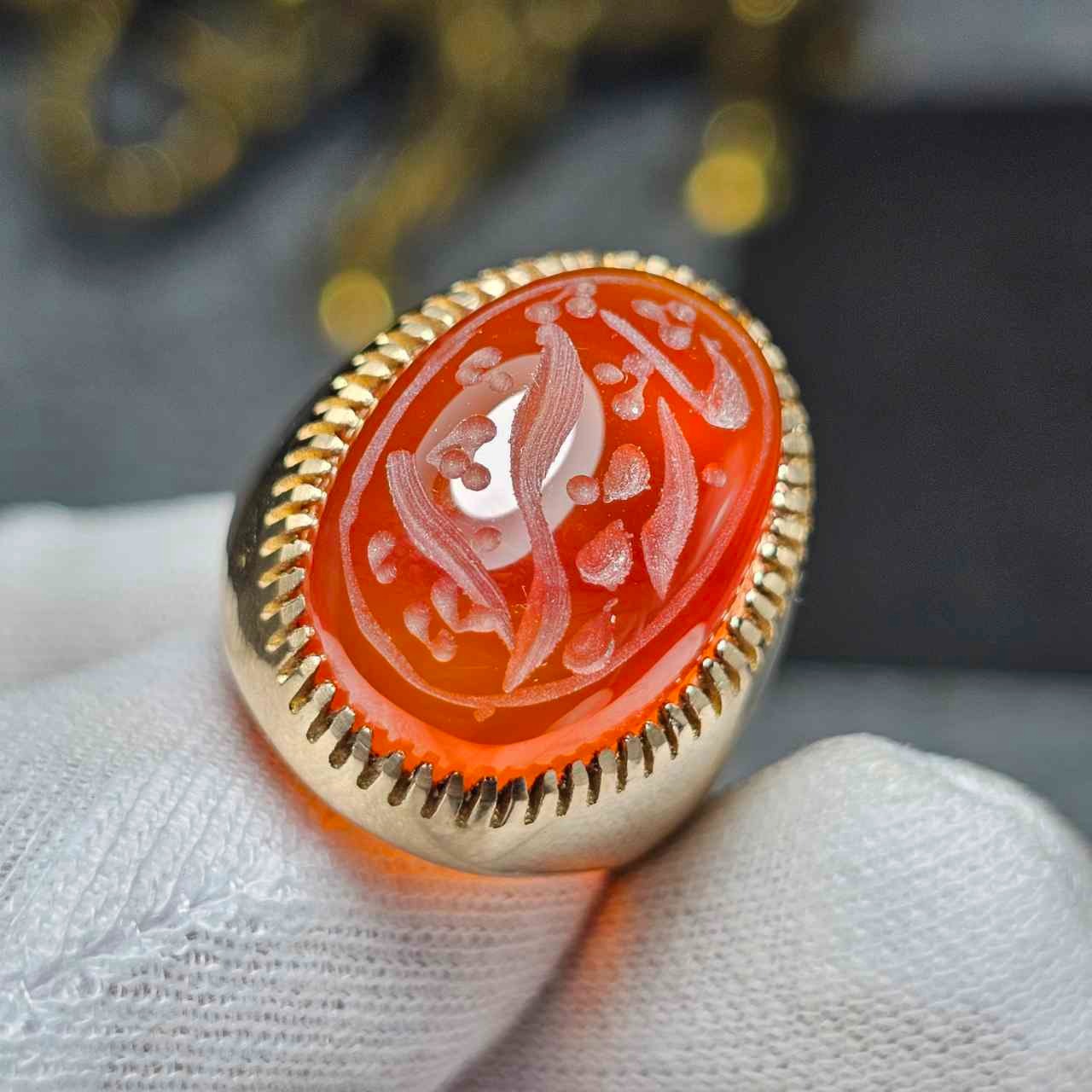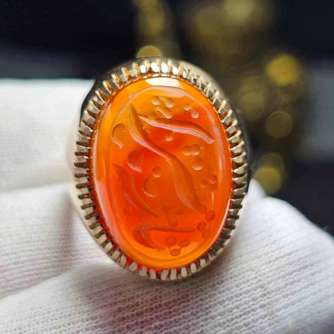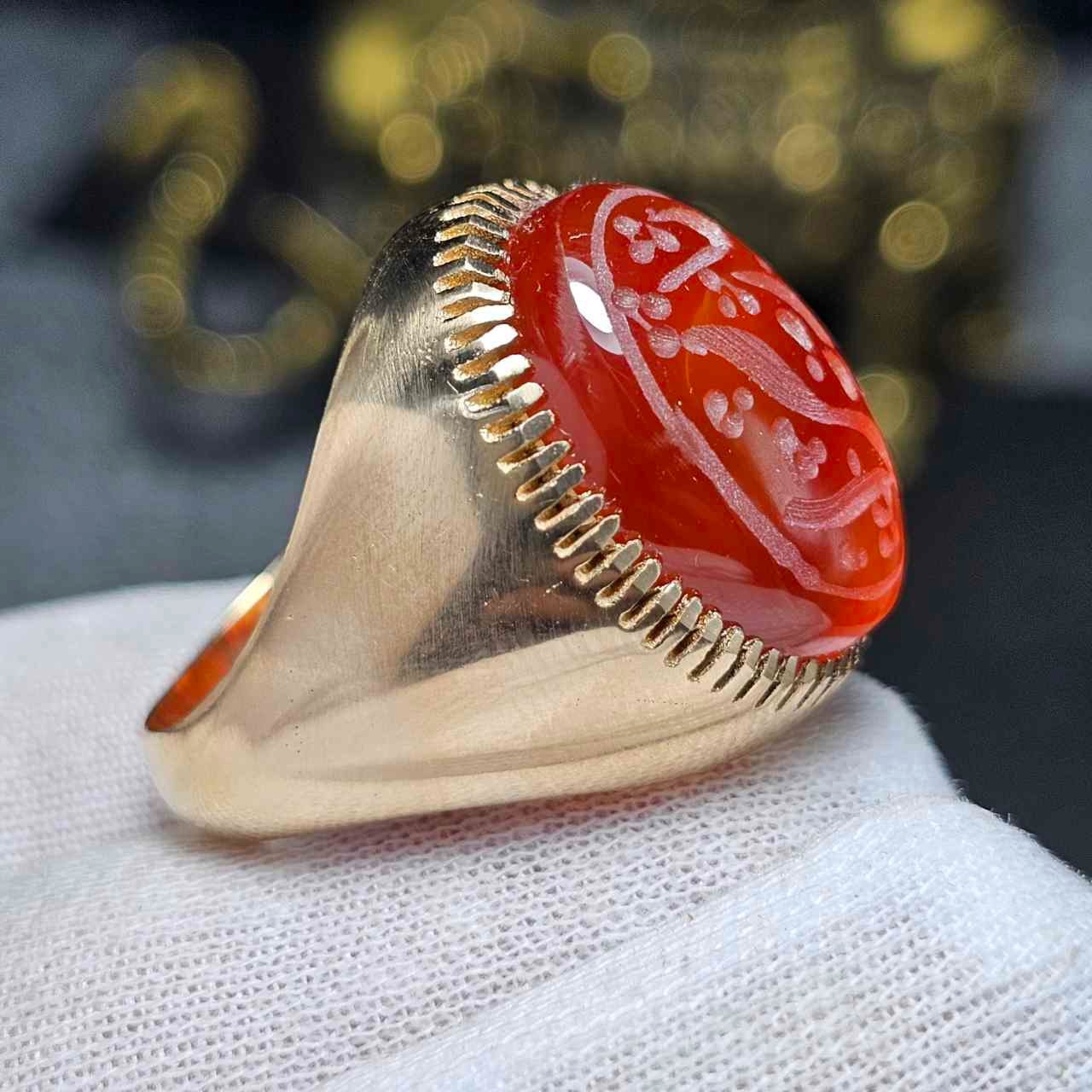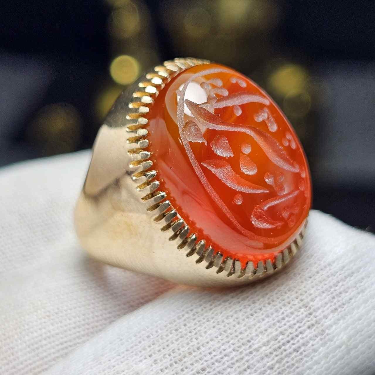 انگشتر طلاروس با سنگ عقیق سبز معدنی خط دست 36557
