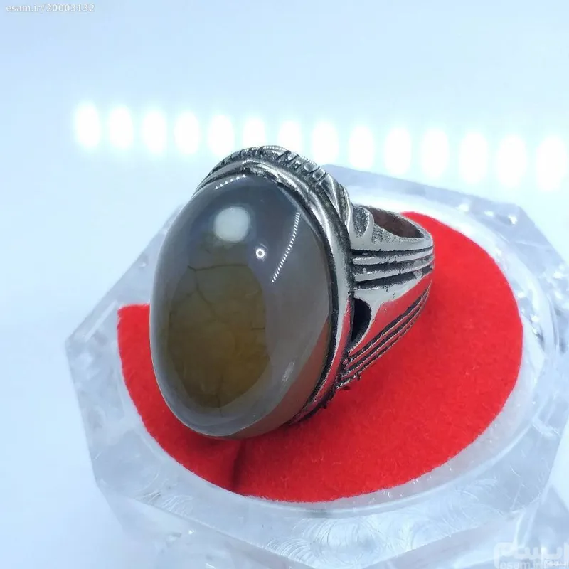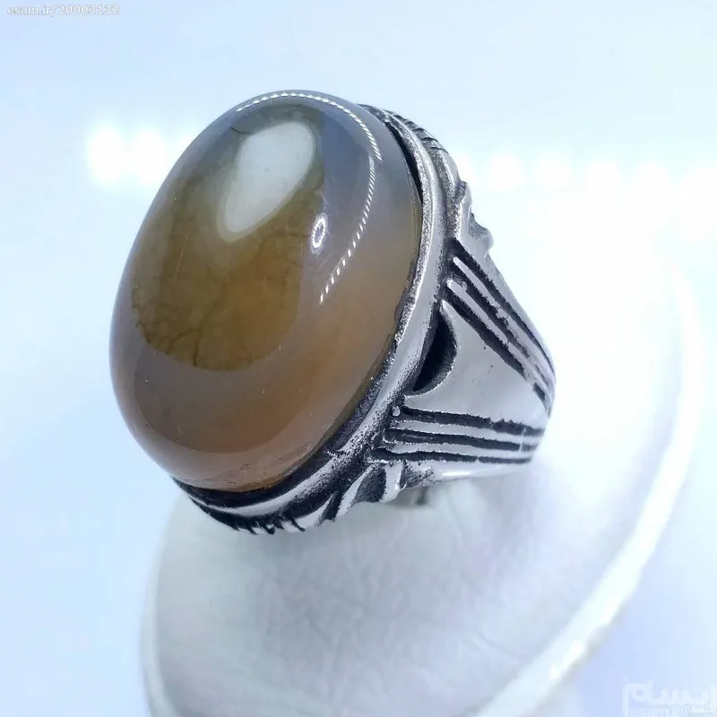 انگشتر رکاب نقره شیک و بسیار زیبا با نگین عقیق شجری خوشرنگ با رکاب زیبا و منحصربفرد