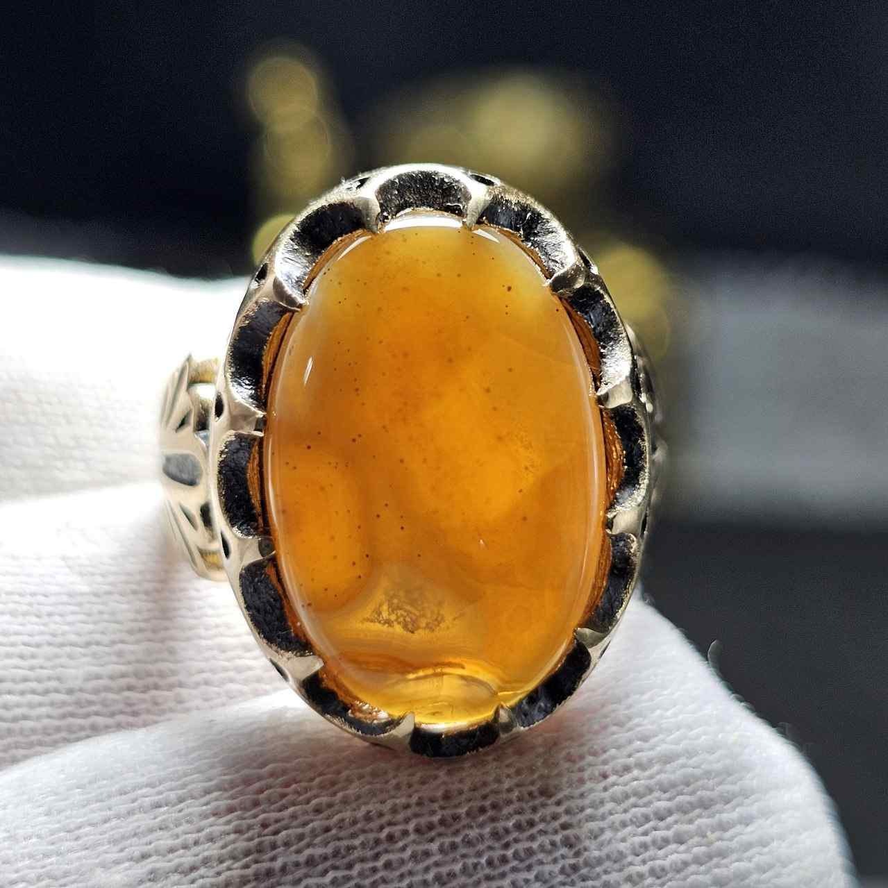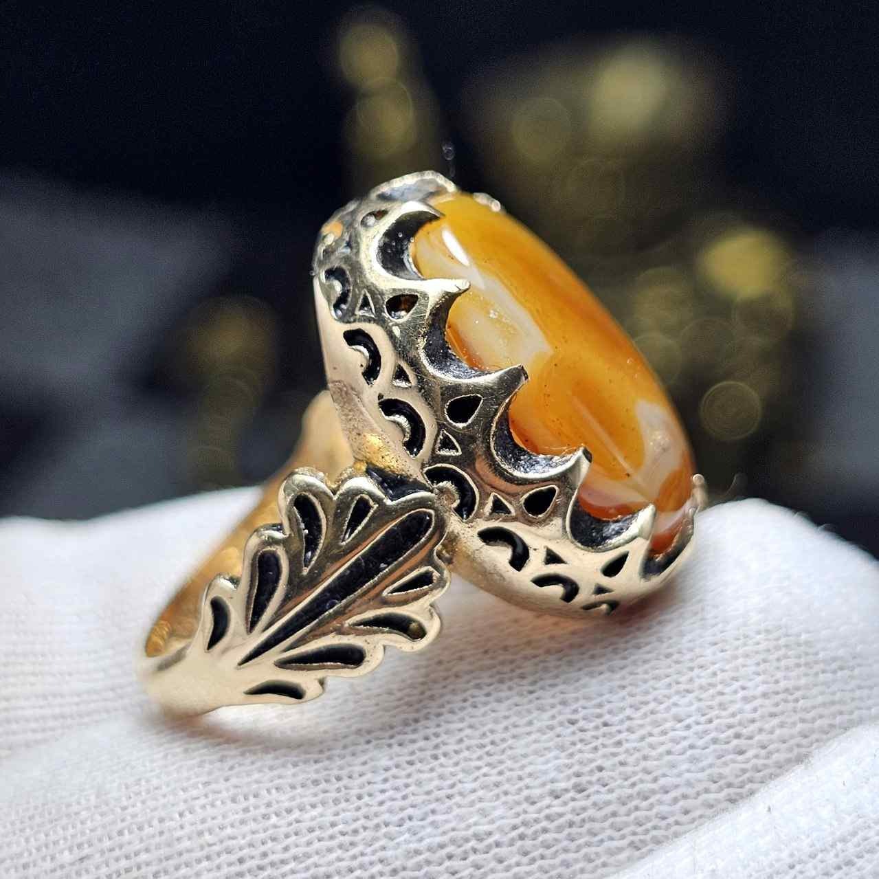 انگشتر طلاروس با عقیق جزع معدنی یمن 36555