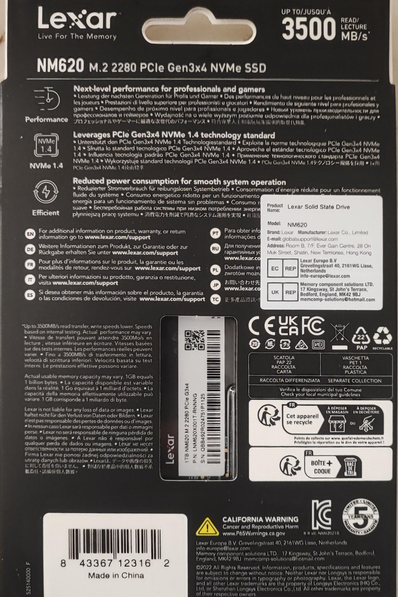اس اس دی M.2 NVMe لکسار Lexar NM620 ظرفیت 1 ترا