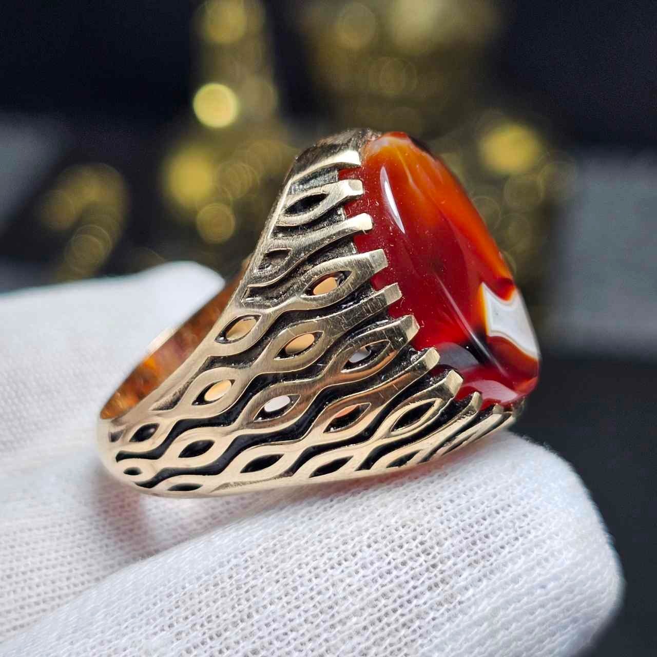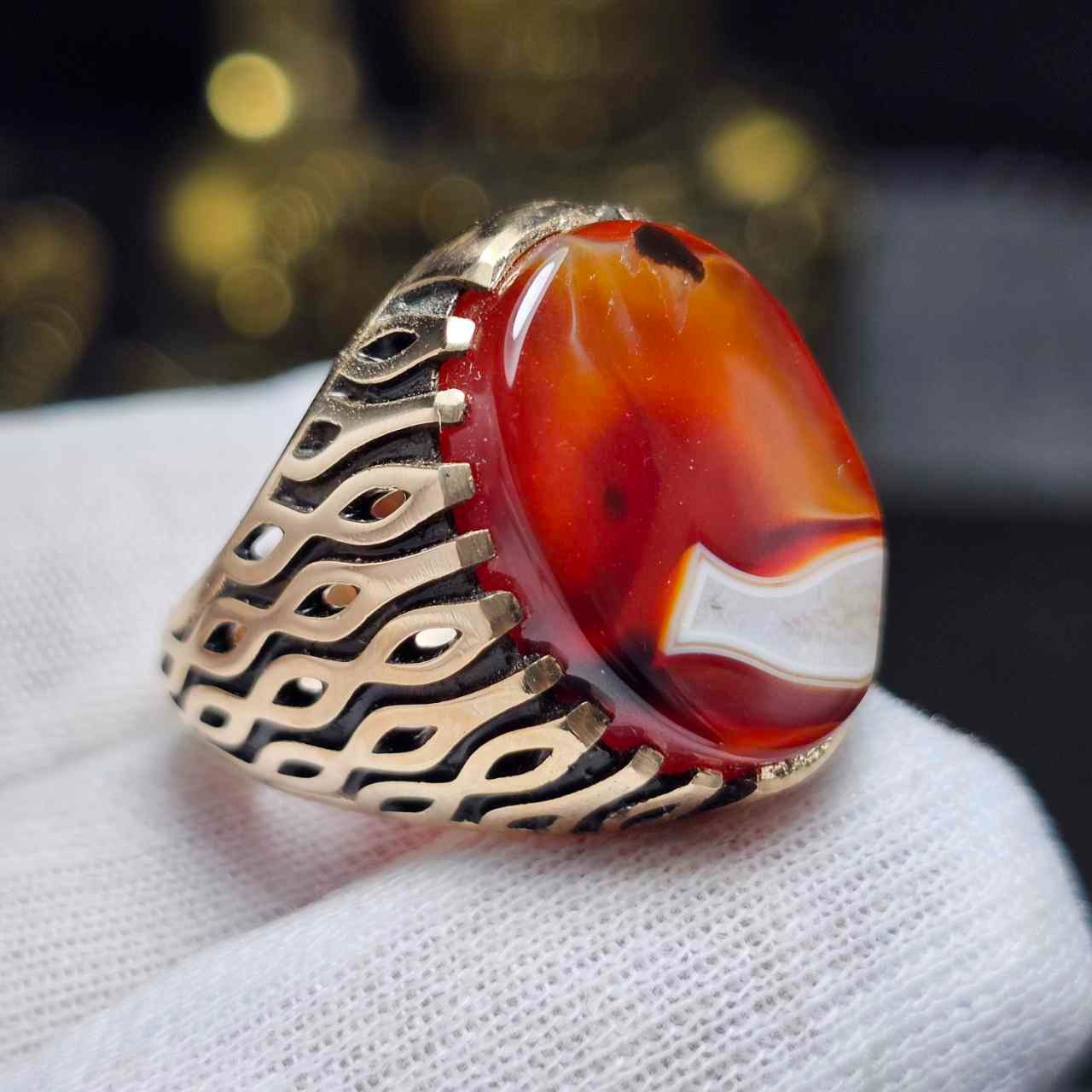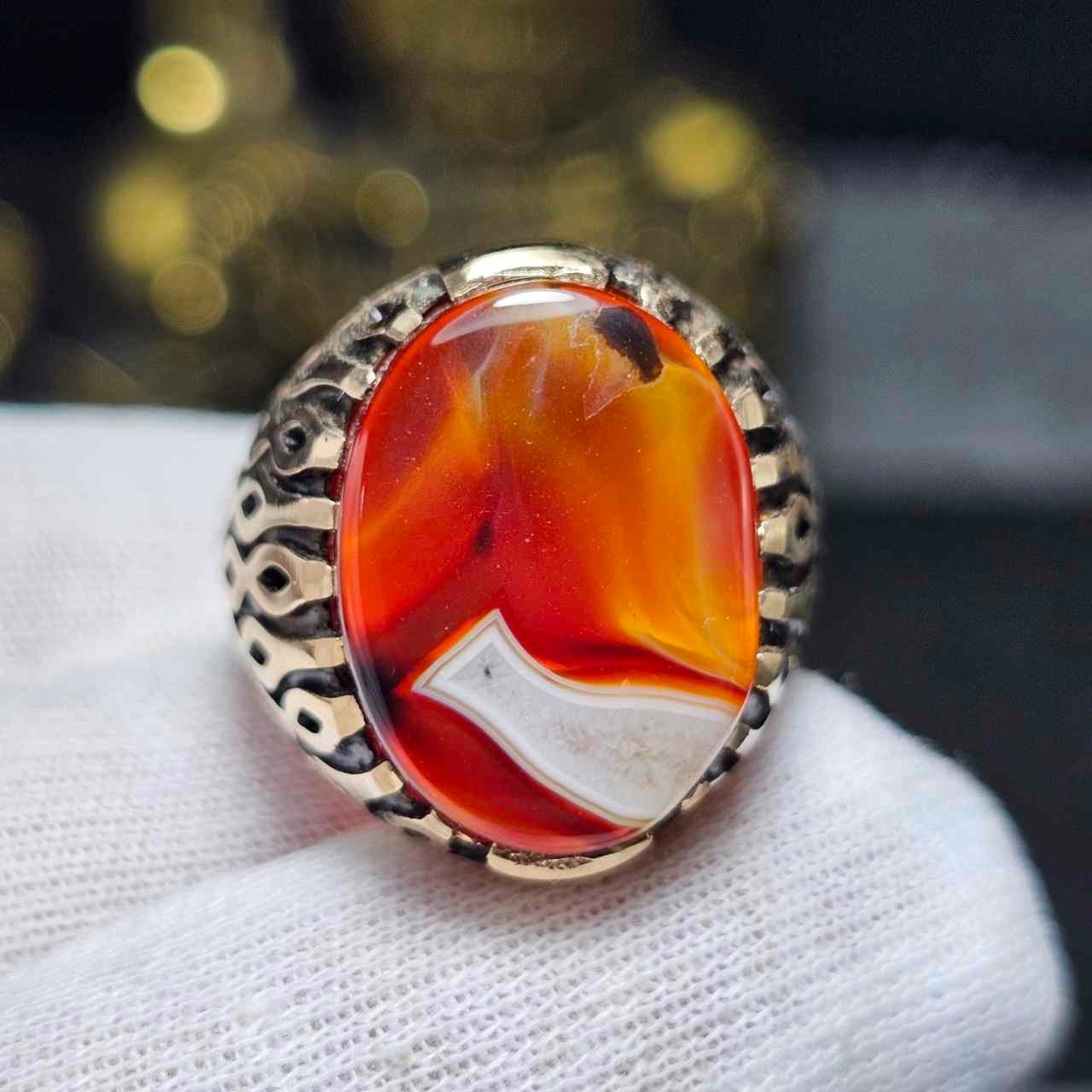 انگشتر طلاروس باعقیق مصور معدنی خراسانی 36551