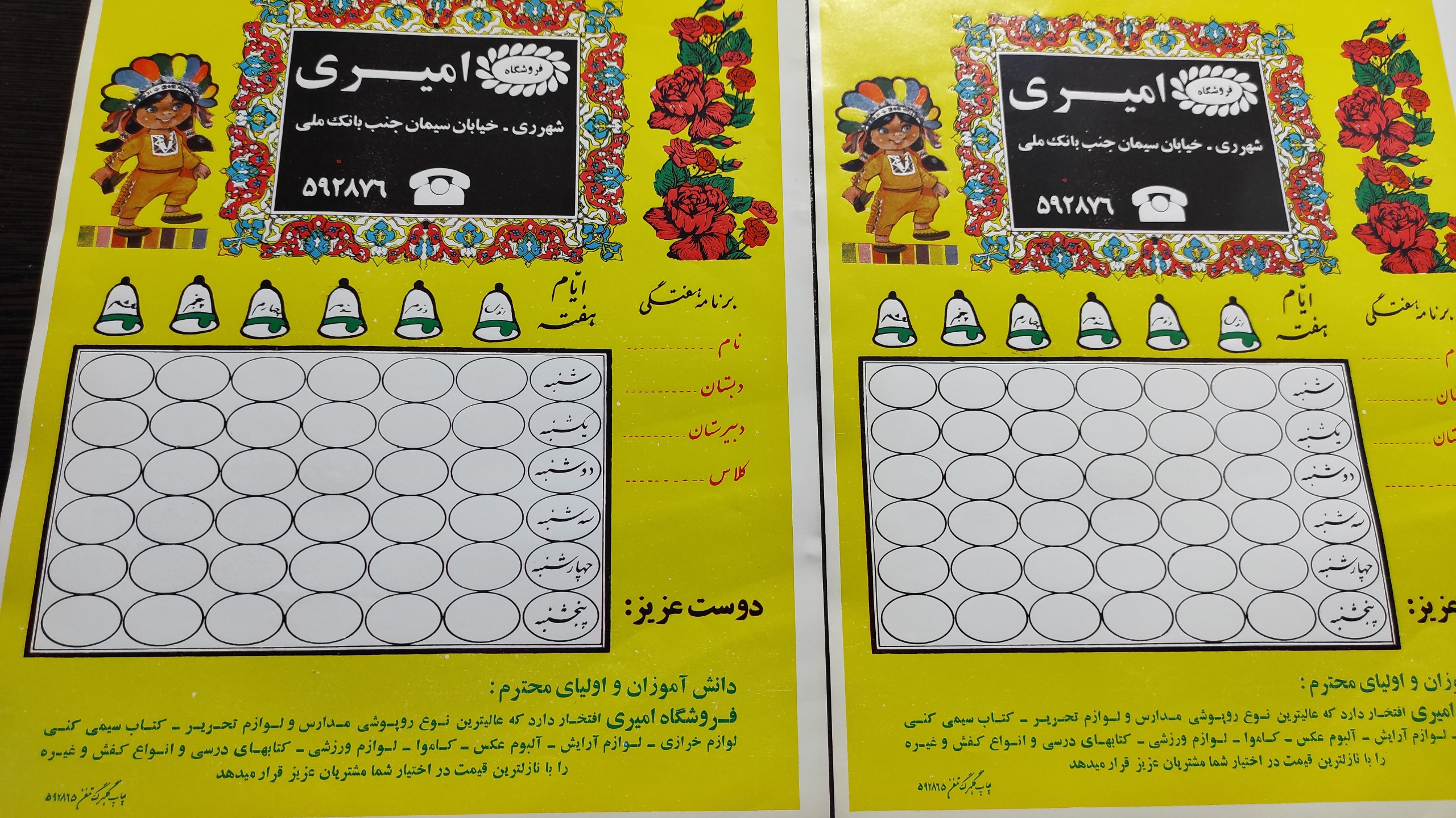 برنامه کلاسی هفتگی فروشگاه امیری دهه 50
