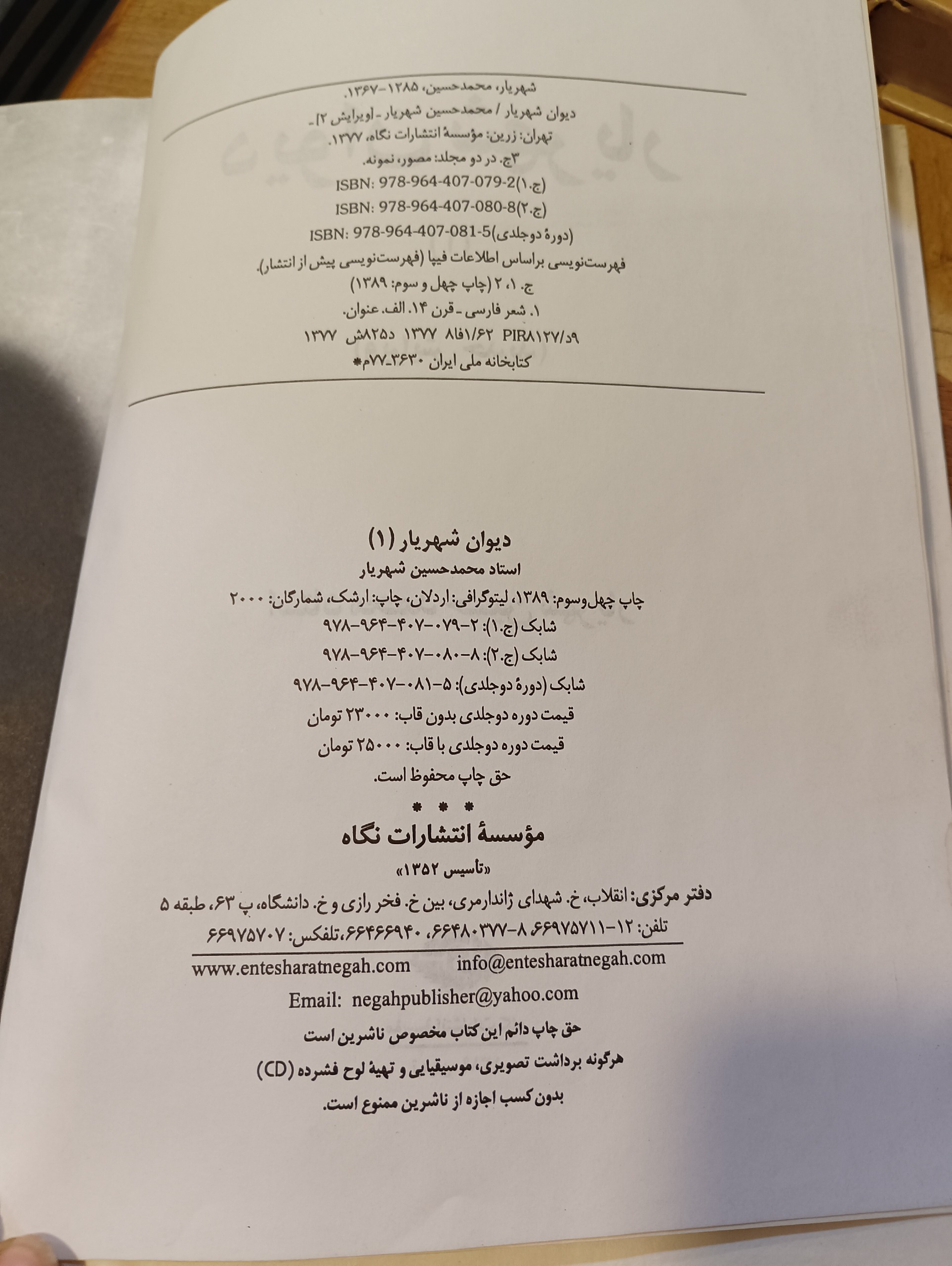 کتاب دیوان اشعار شهریار 2 جلدی