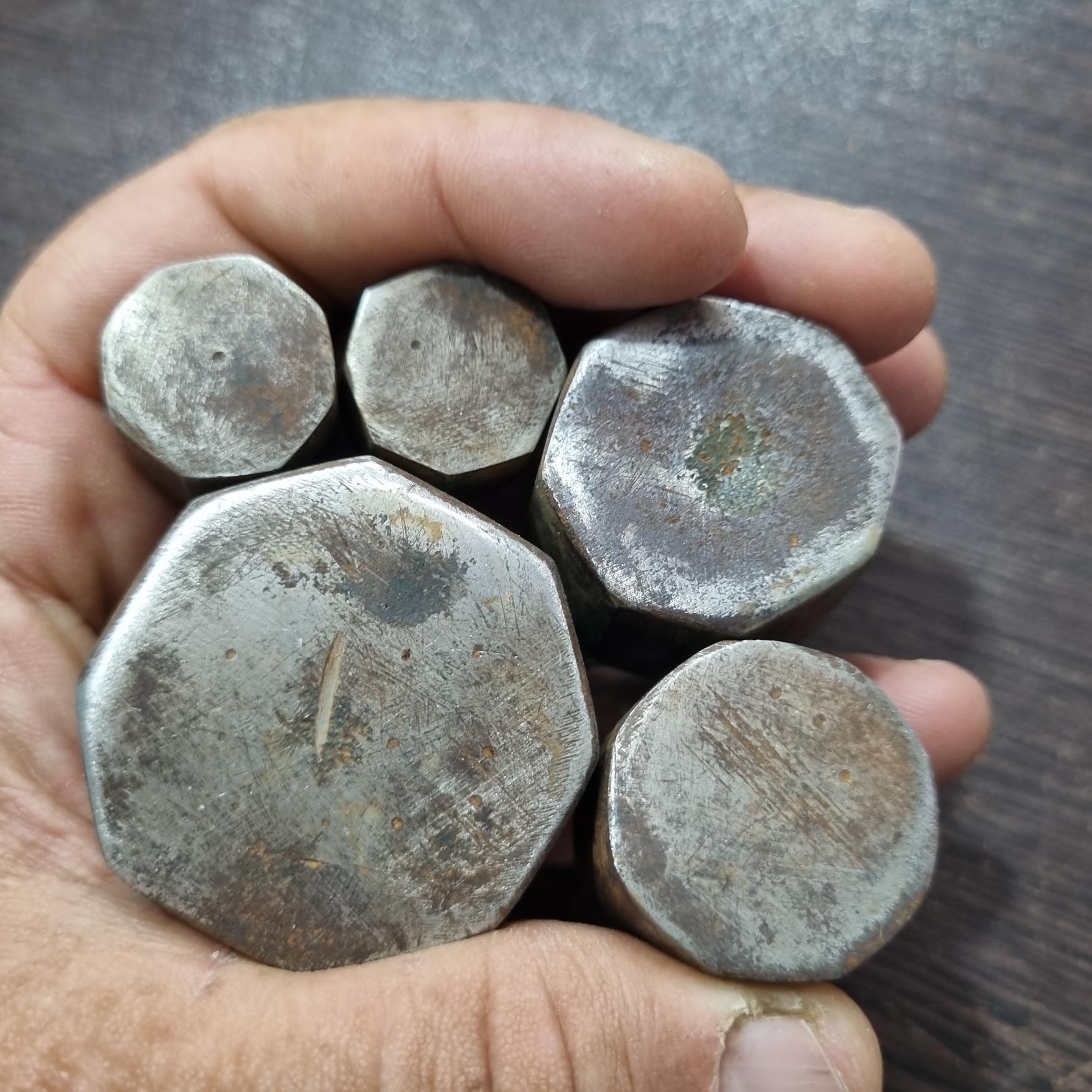 طبق تصویر تقدیم میشه وزنه2و3و4و5و10و10و30و50و100مثقالی قاجاری فولادی طبق تصویر باتوجه به قدمت زیاد دقیق نیستن بیشتر قیمت بابت قدمت وکلکسیون هست این وزنه ها باتوجه به اینکه هنر دست اجدادمان هست ارزشمند وکمیاب هستن ممنون میشم از فروشگاه ما دیدن کنید باخرید چند کالا یه کرایه پست پرداخت کنید
