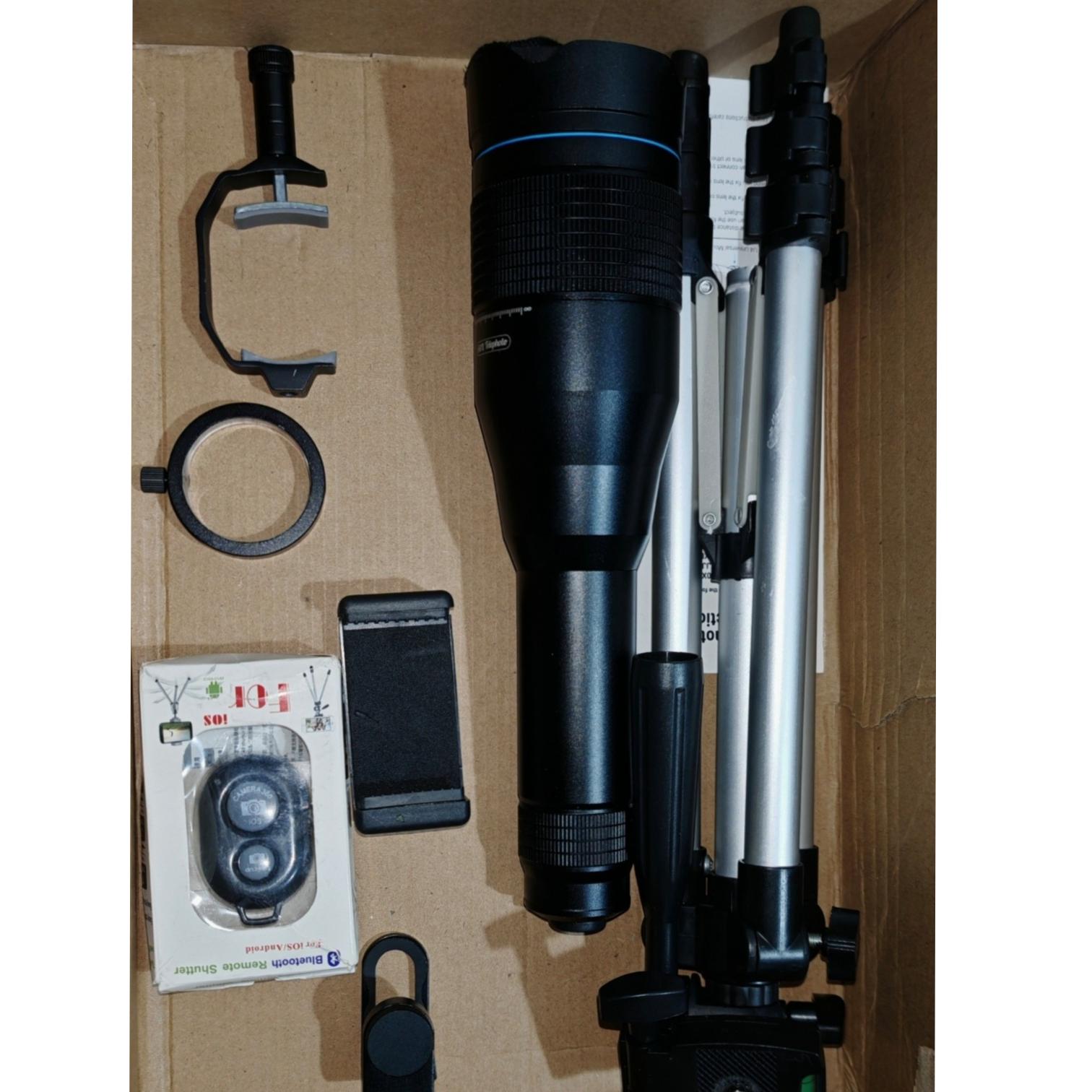 توجه:این لنز به همراه یک سه پایه و یک هولدر یا نگهدارنده مناسب تمام گوشی های موبایل که به صورت جداگونه خریداری شده ارائه میشه.