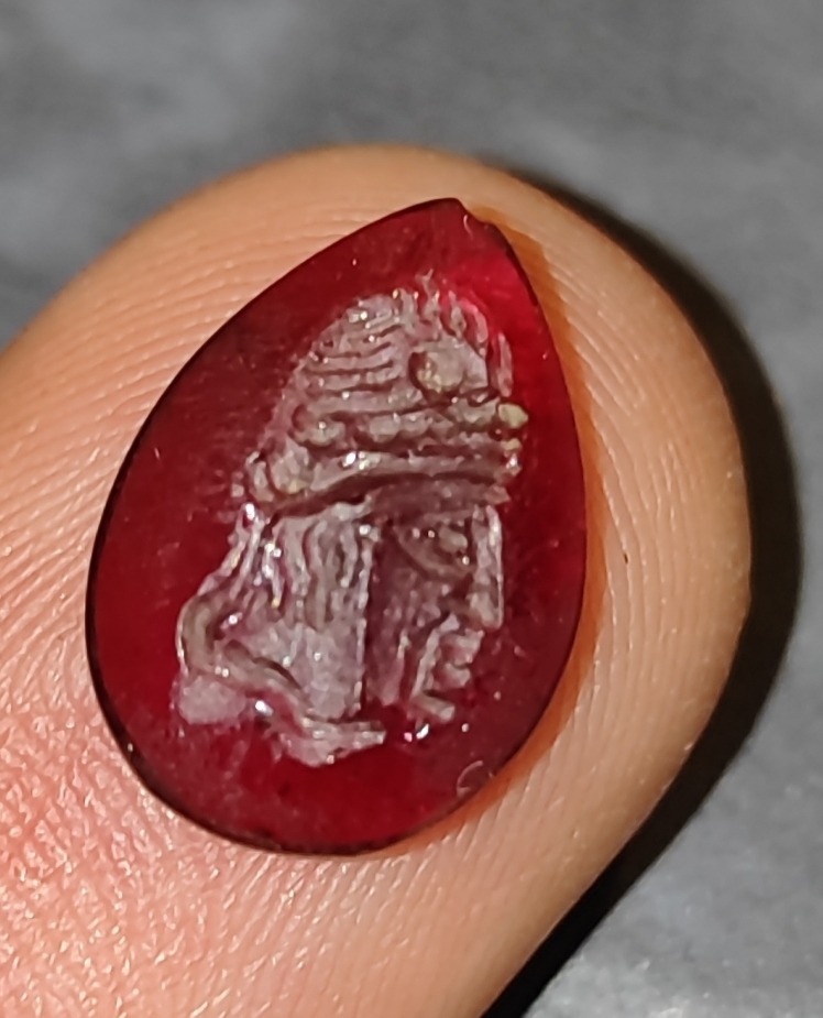 نشان کهنه رخ شاه یا شاهزاده باستانی بر روی یاقوت سیلان