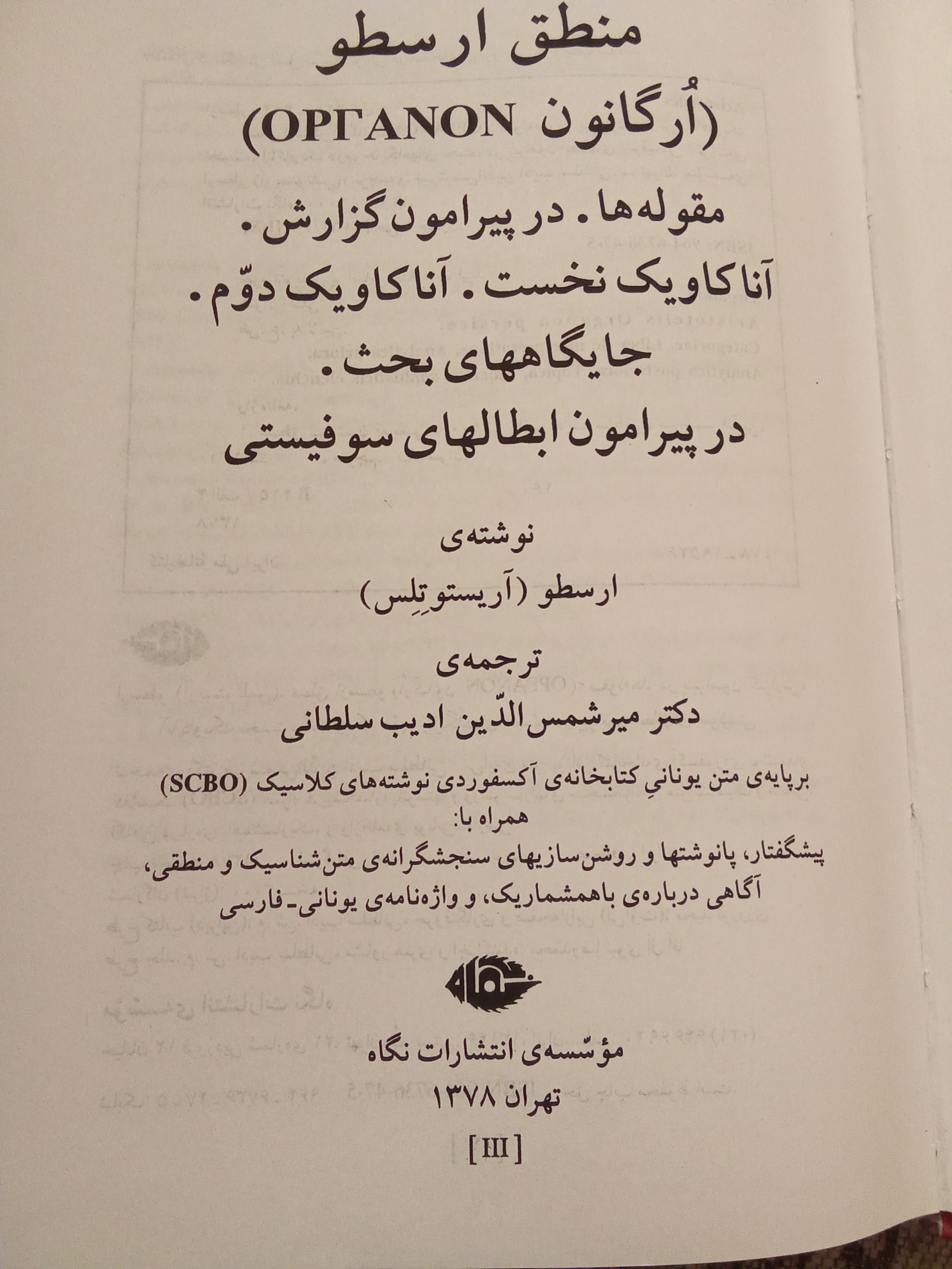 منطق ارسطو یا ارگانون چاپ 1378