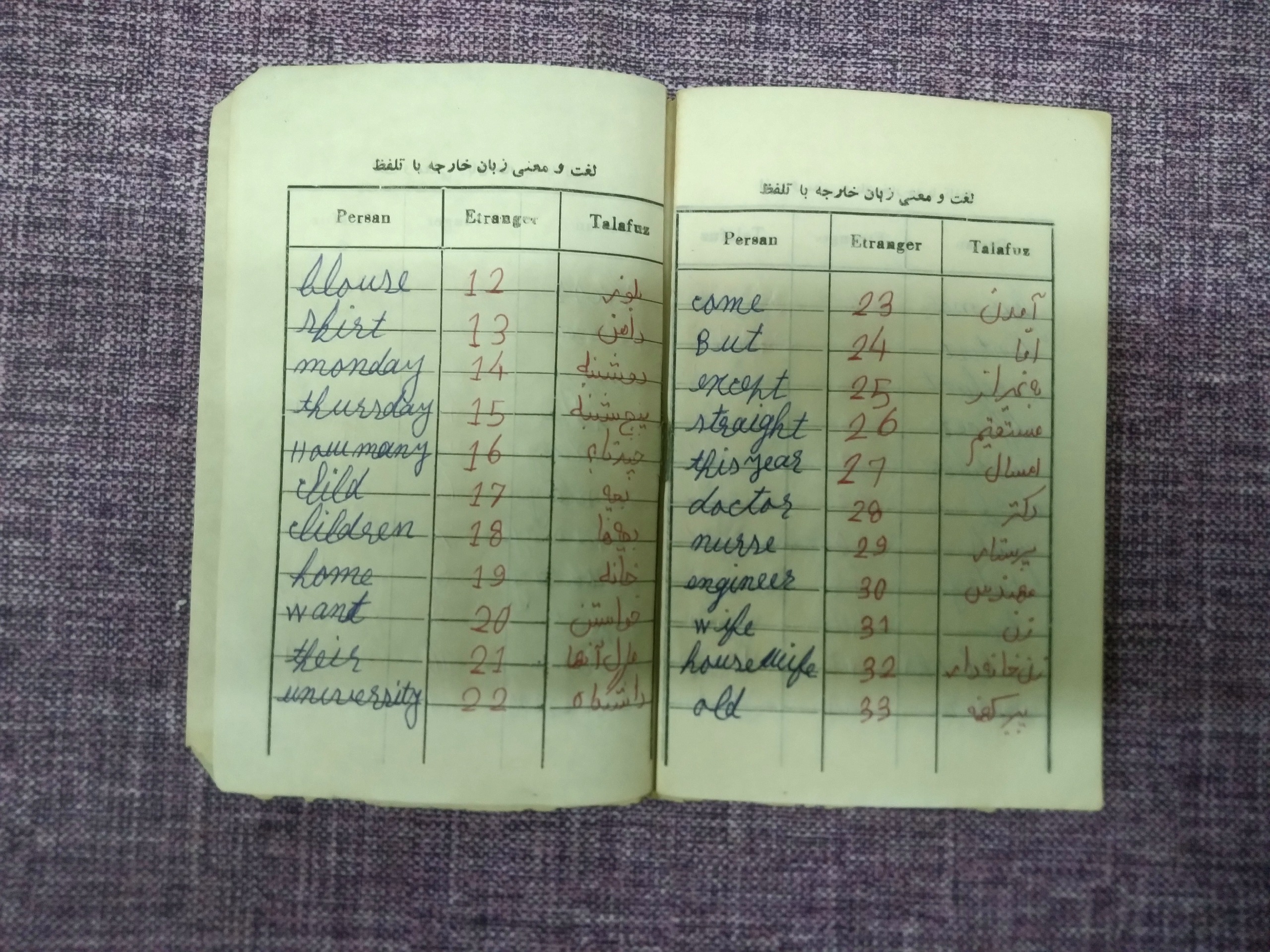 دفتر ِلغت معنی و تلفظ انگلیسی چند صفحه نوشته دارد جلد جداشده است