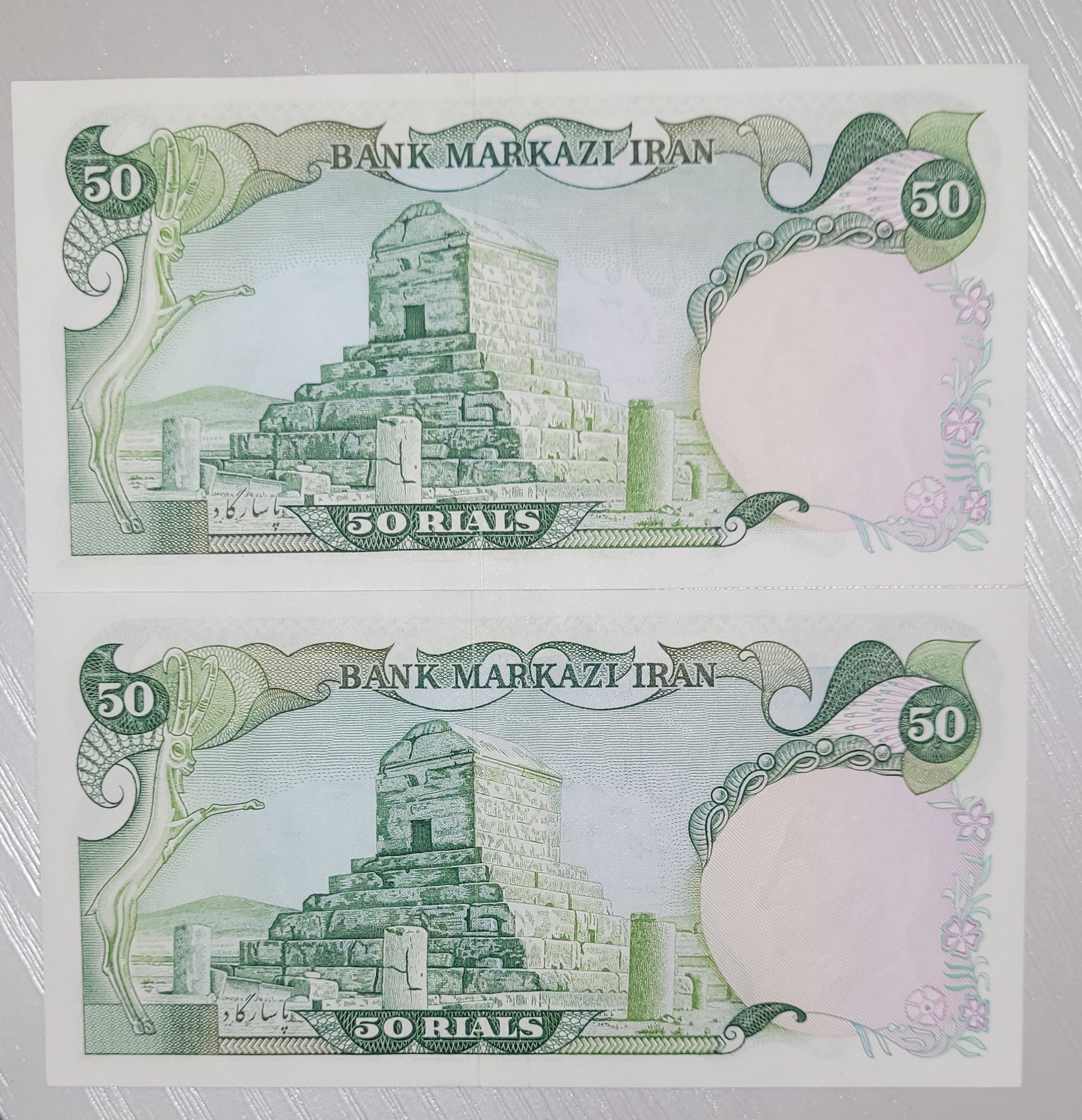 یک جفت اسکناس 50 ریال با چندین شماره فاصله
