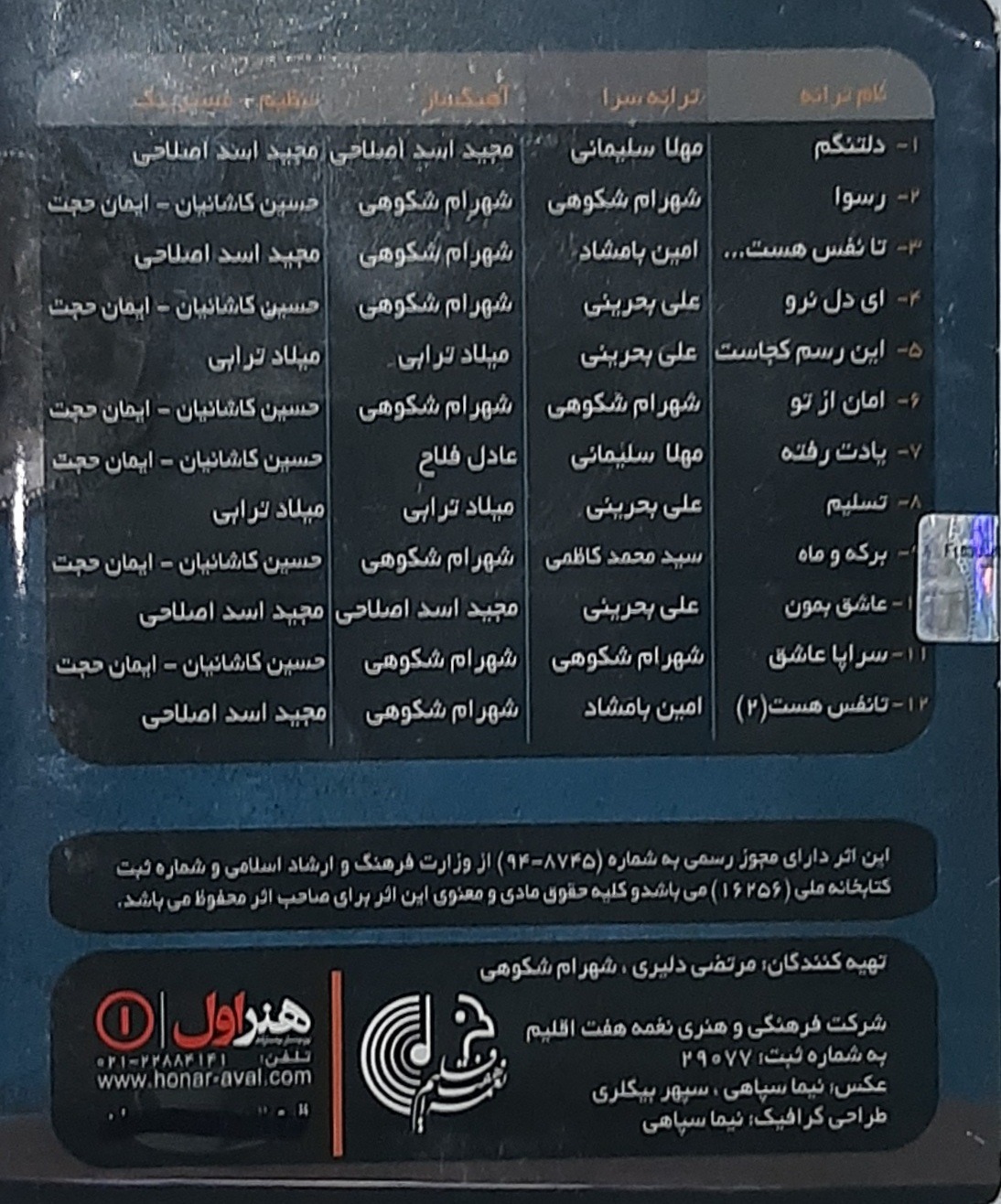 سی دی تا نفس هست شهرام شکوهی کاور کاغذی