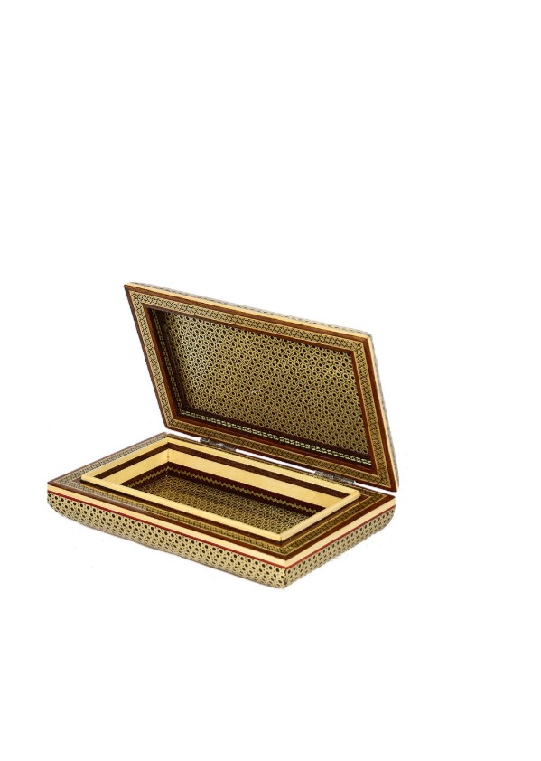 همانگونه که میدانیم هنر خاتمکاری از جمله صنایع دستی قدیمی ایران است و یکی از هنرهای برجسته و مهم ما میباشد. خاتم، ترکیبی از چندضلعیهای بسیار کوچک است که به طور منظم در ابعاد پنج ضلعی، شش ضلعی، هفت ضلعی، هشت ضلعی و یا ده ضلعی در کنار هم قرار میگیرد. انواع جعبه خاتم کاری جواهرات این هنر نیاز به ظرافت و دقت و حوصله زیادی دارد، میزان مرغوبیت یک وسیلۀ خاتمکاری شده به میزان ریز و ظریف بودن مثلثهای کنار هم قرار داده شده، یا همان چند ضلعی ها دارد. یعنی هر چقدر این چند ضلعی های کنار هم قرار داده شده، ریزتر و ظریفتر باشند آن خاتمکاری مرغوب و ارزشمندتر است.