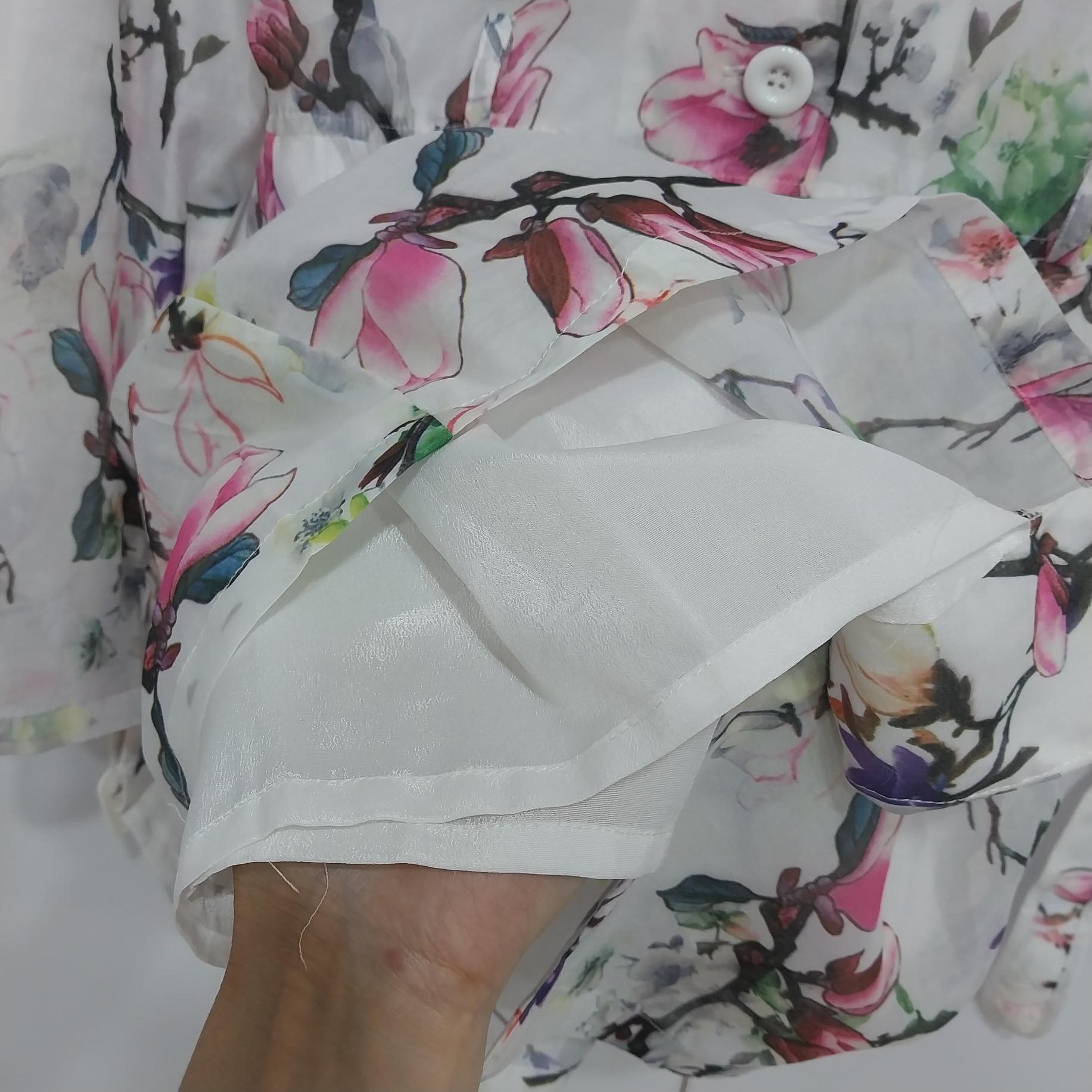 شومیز مجلسی زنانه ، جنس تترون نخ ، طرح گل دار ، آستردار ، قسمت جلو دید ندارد، قسمت پشت در قسمت گردن تا شانه کمی دید داره , قیمت کمر دوخت داره ، قد 85 ، عرض سینه 45 ، قسمت کمر 35 مناسب سایز 36