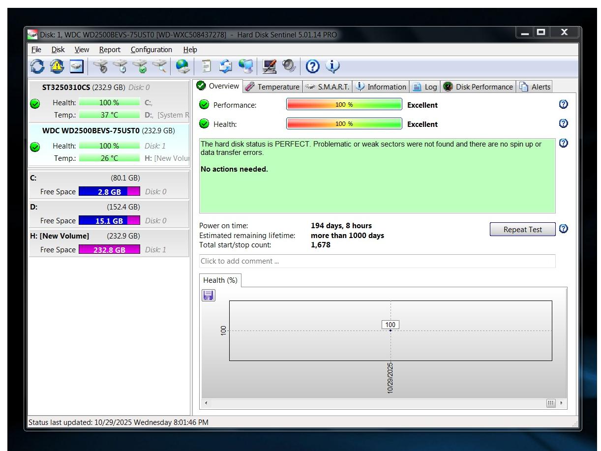 هارد لپ تاپی 250 گیگ ساتا وسترن { کارکرد 194 روز }