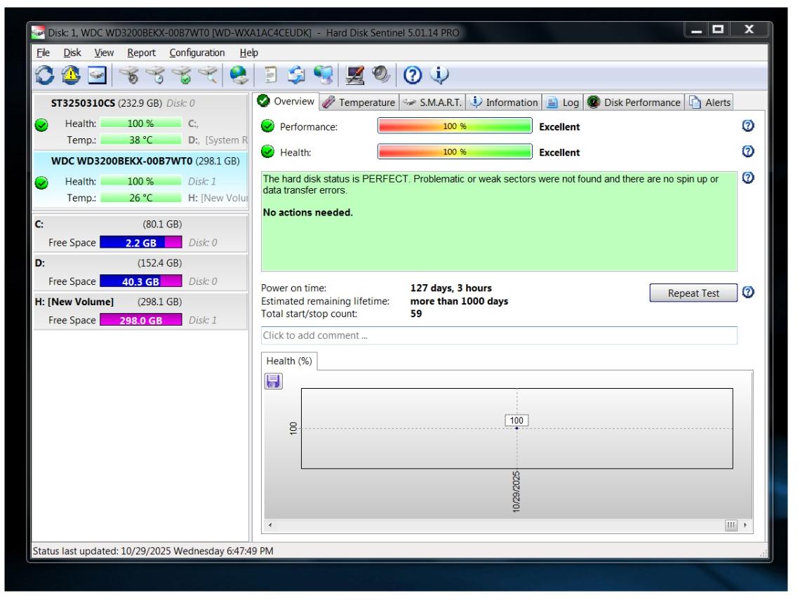 هارد لپ تاپی 320 گیگ ساتا وسترن { کارکرد 127 روز }