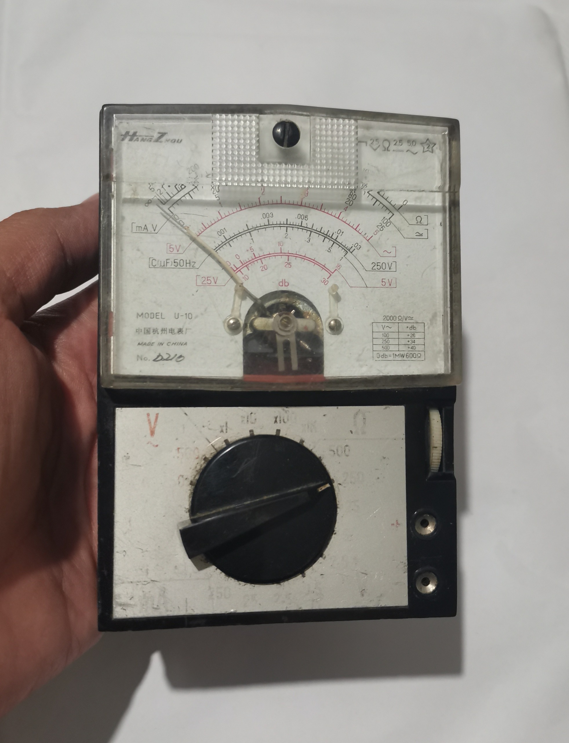 مولتیمتر آنالوگ (Multimeter) مدل U-10 ساخت کارخانه لوازم اندازهگیری الکتریکی هانگژو چین () است.