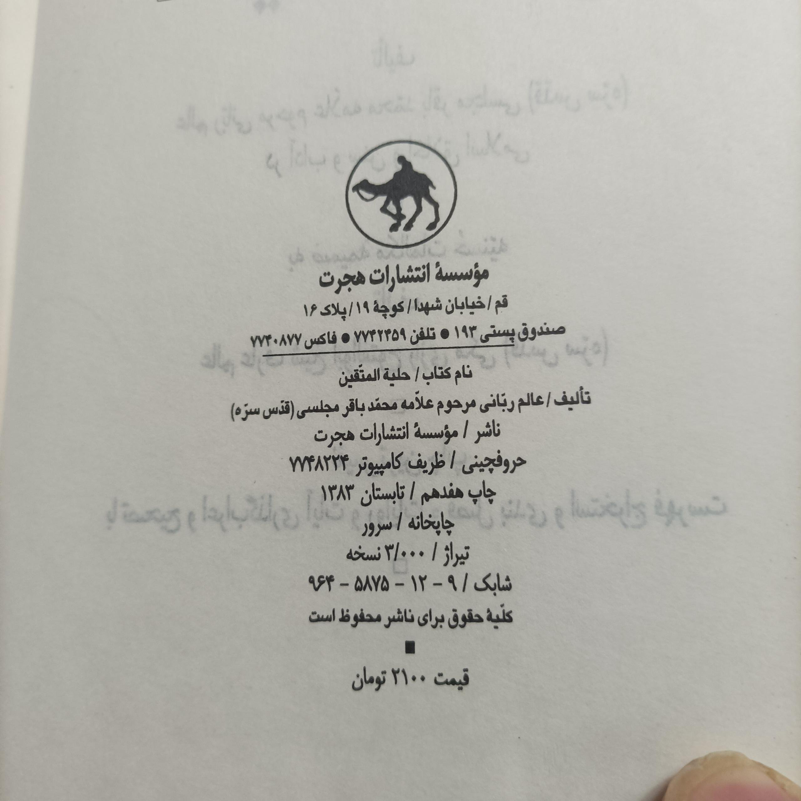 حلیة المتقین نوشته علامه مجلسی انتشارات هجرت