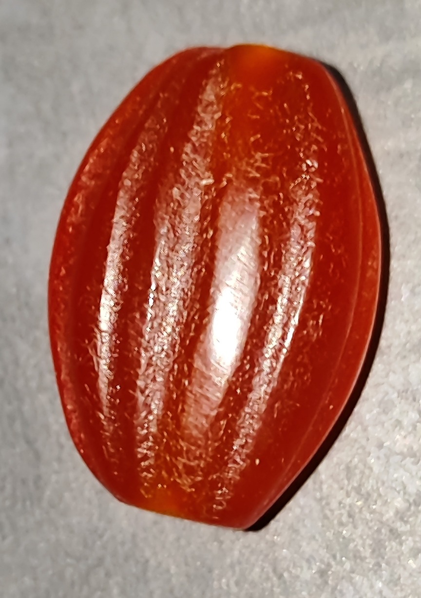 مهره کهنه و باستانی عقیق یمن سرخ تراش خربزه ای بسیار زیبا و خاص کلیه مشخصات مطابق تصاویر