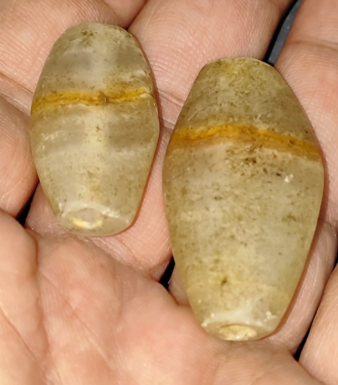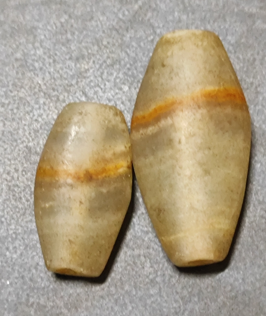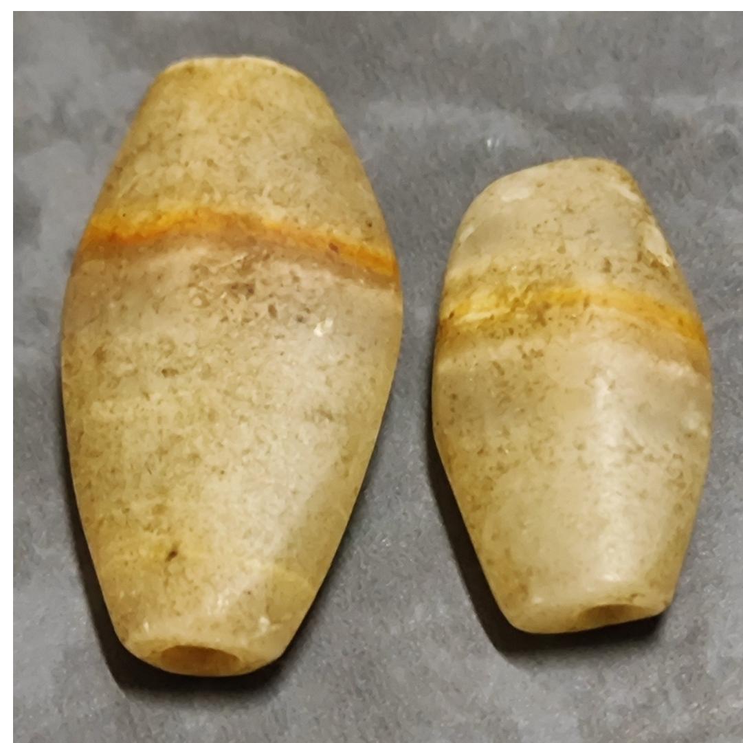 جفت مهره سنگی کهنه و باستانی تراش زبانی