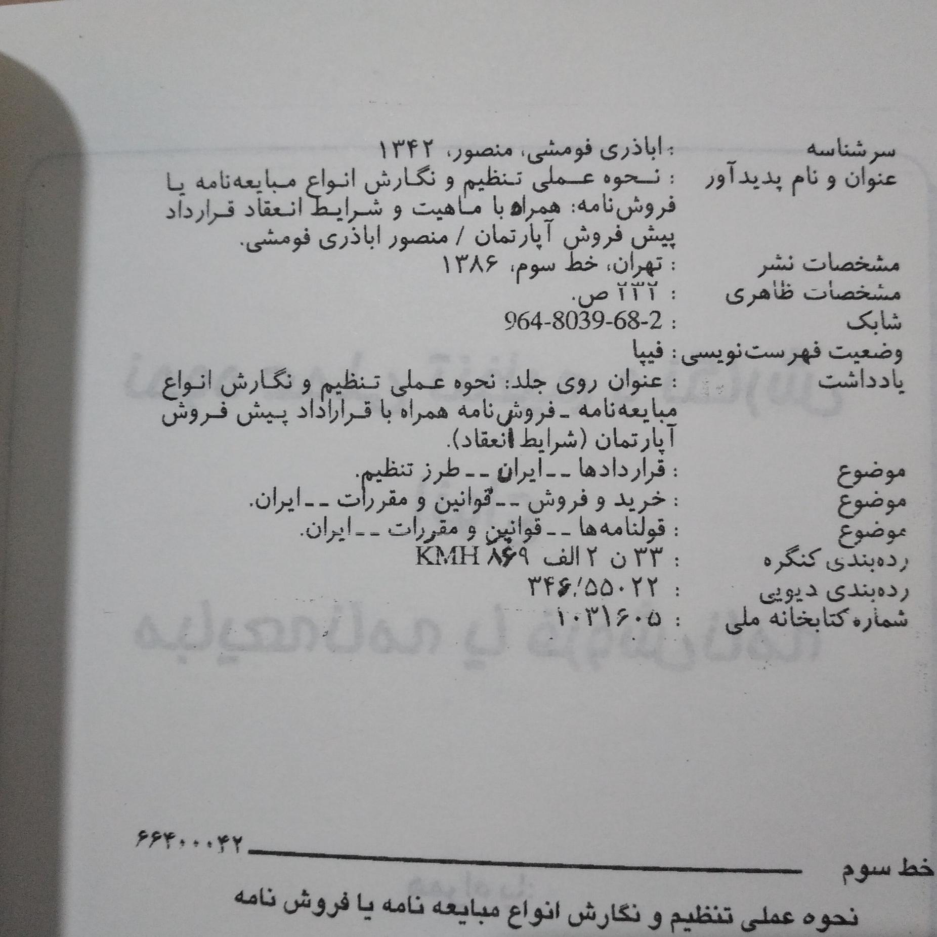 انواع مبایعه نامه (فروش نامه)نحوه عملی تنظیم نگارش