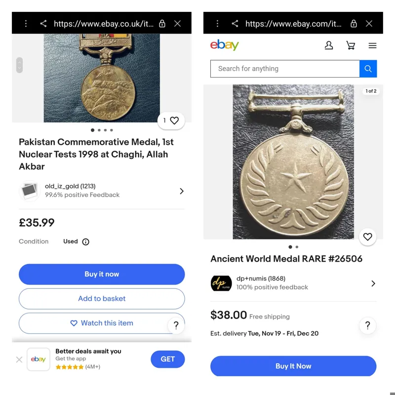 یکیش یادبود دنیای باستان یکی نظامی هست و دیگری هم مربوط به آزمایش اتمی پاکستان 25 سال پیش در چاغی پاکستان هست قیمت درج شده برای هر سه با هم هست اسلاید دوم قیمت دوتاش در سایت های خارجی درج شده واقعا پول یکیش هست