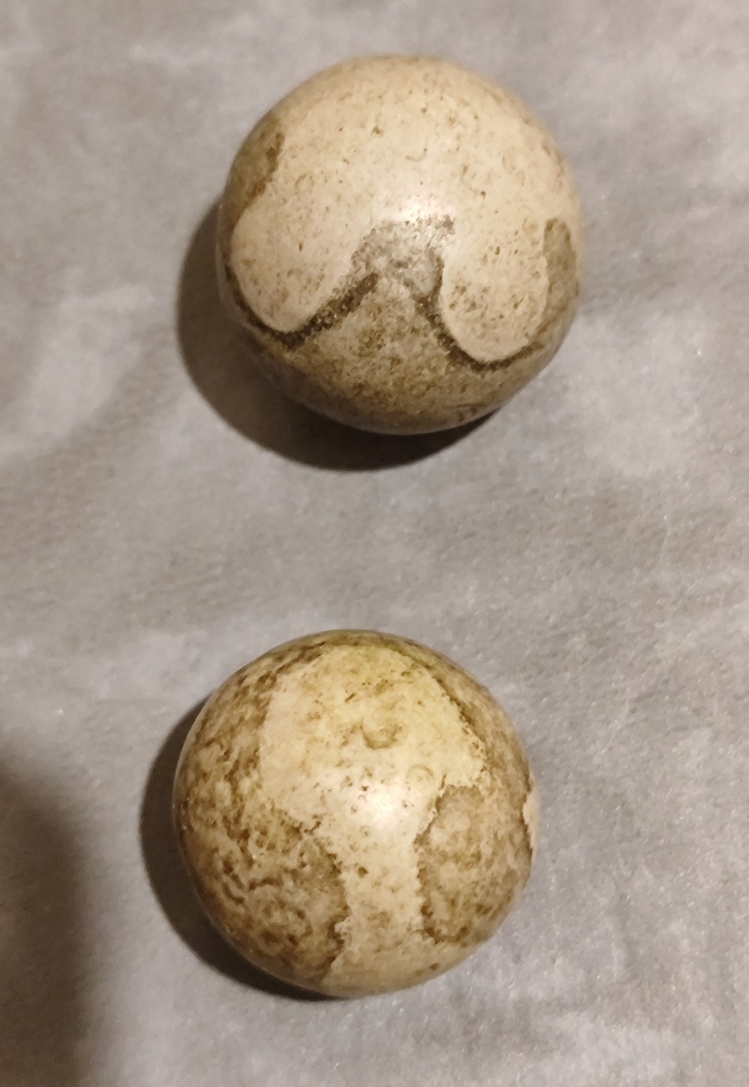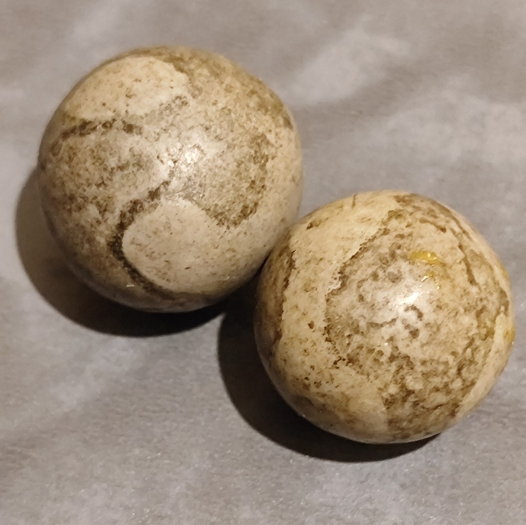 یک جفت گوی یا مهره توپی بدون سوراخ کهنه و باستانی مصور