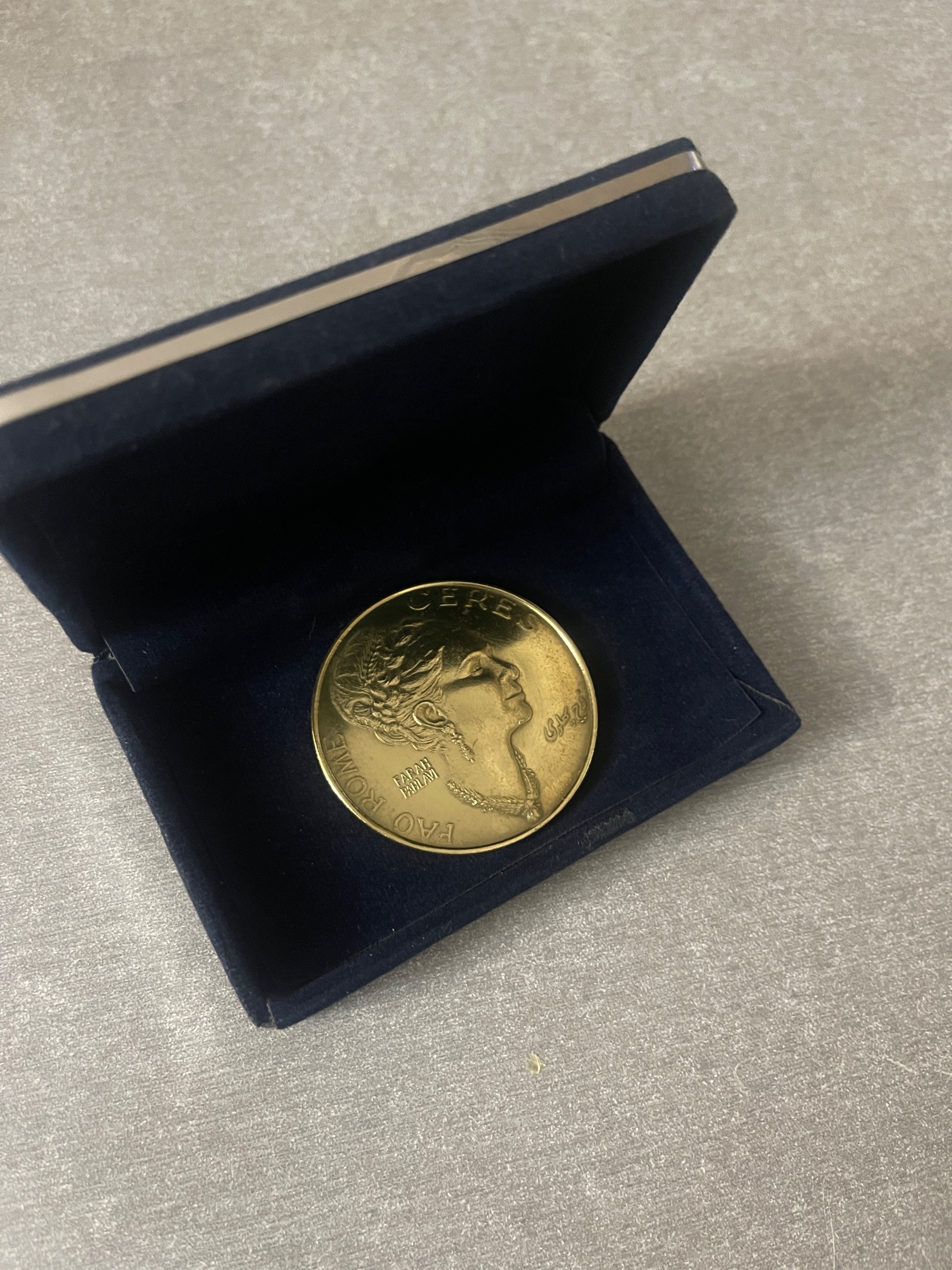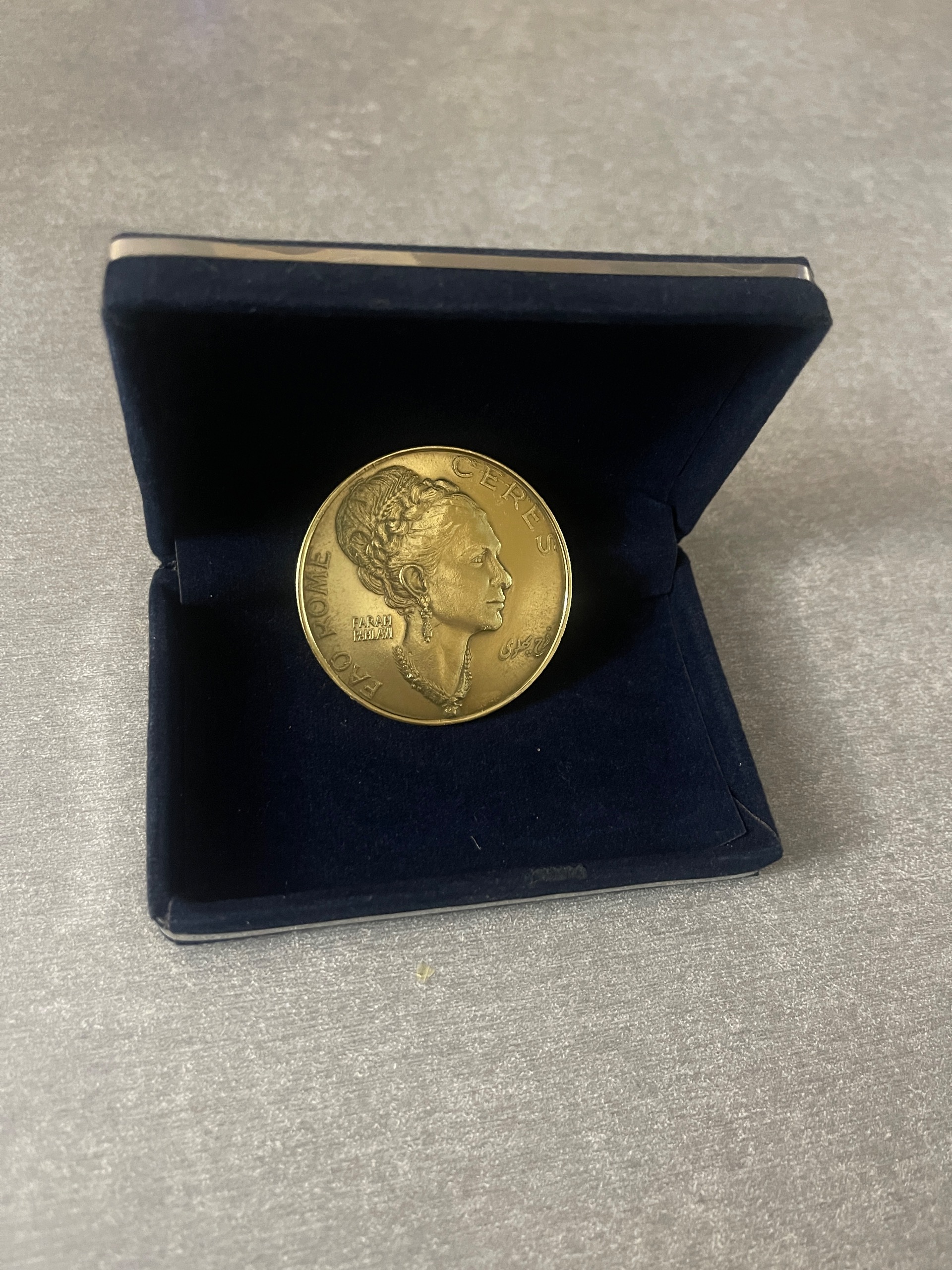 مدال یادبود برنزی فرح فائو همراه با جعبه زیبا