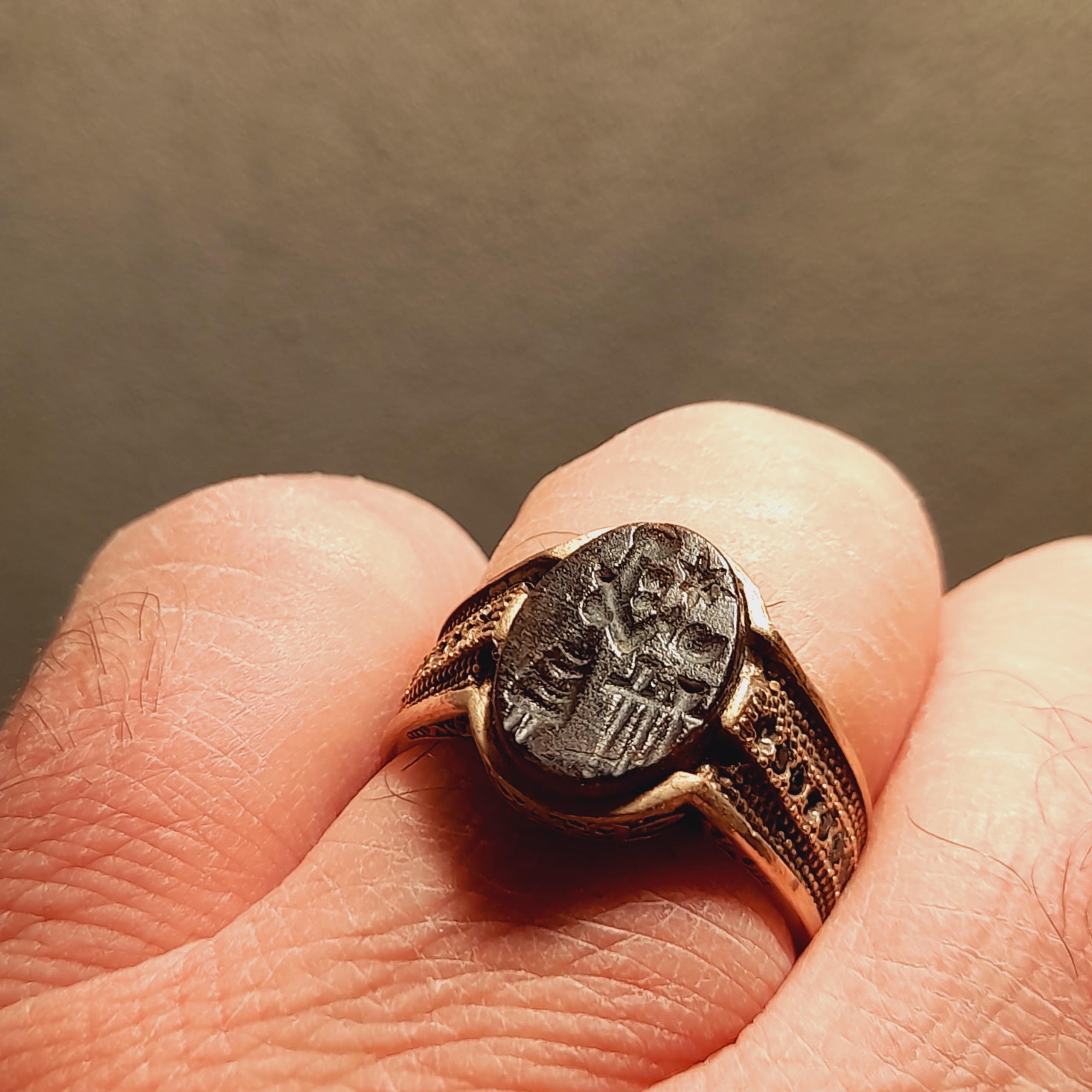 انگشتر نشاندار سنگ یاقوت سیلان نقش عبادی