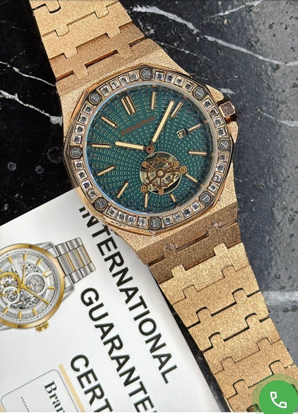 ساعت AP یا همون ادمارس پیگه، بند و قاب دور صفحه طلایی و دور قاب نگین دار :