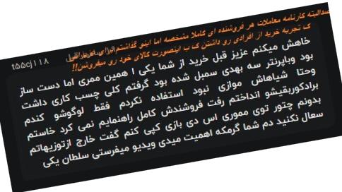 کارنامه معاملات بنده نشان دهنده ضمانت توضیحات (گارانتی) فروشم هست (رضایت خریدار هدف اصلی فروشگاه ما هست)