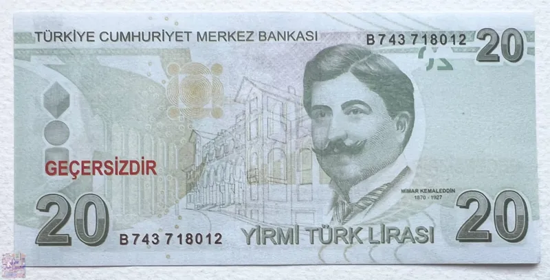 تک اسکناس فانتزی خارجی طرح 20 لیره ترکیه 2009