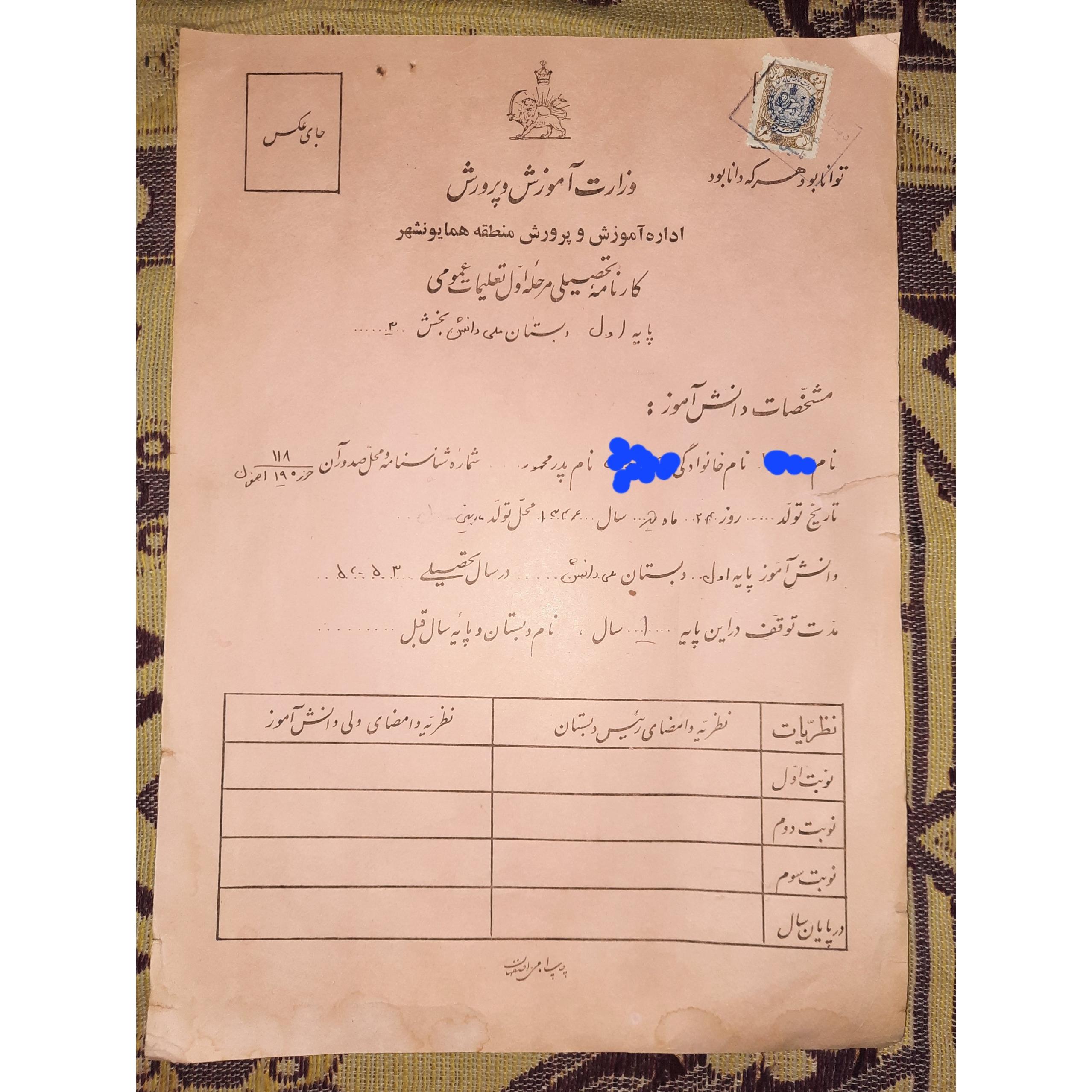 (5عدد)کارنامه دوره ابتدایی منطقه همایونشهراصفهان