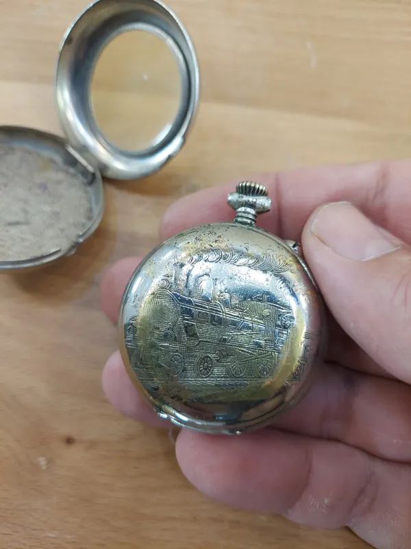 ساعت جیبی سوئیسی خاص با قاب و طرح لوکوموتیو