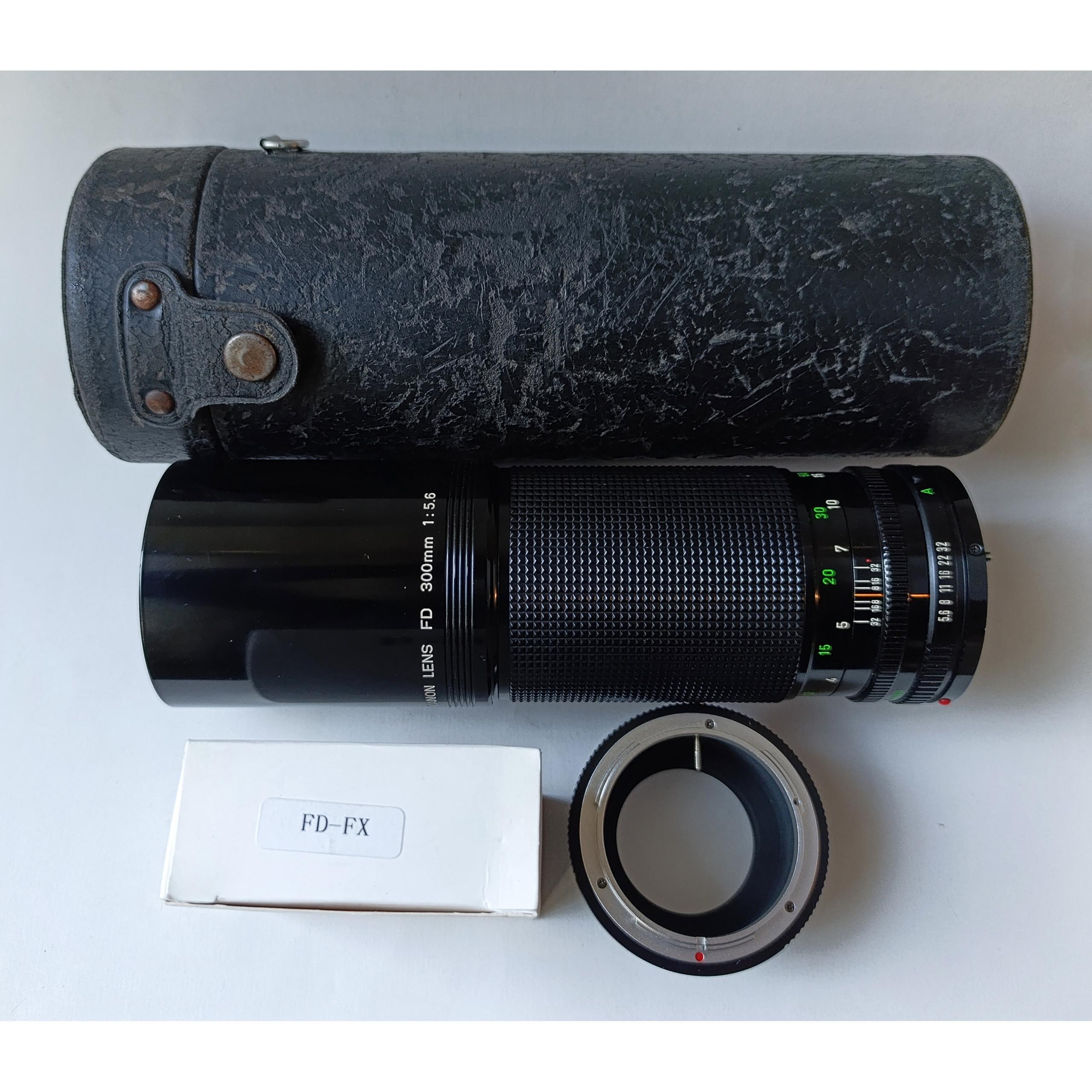 لنز Canon new FD 300mm f5.6 کاملا سالم در حد نو، همراه تبدیل FD به فوجی FX
