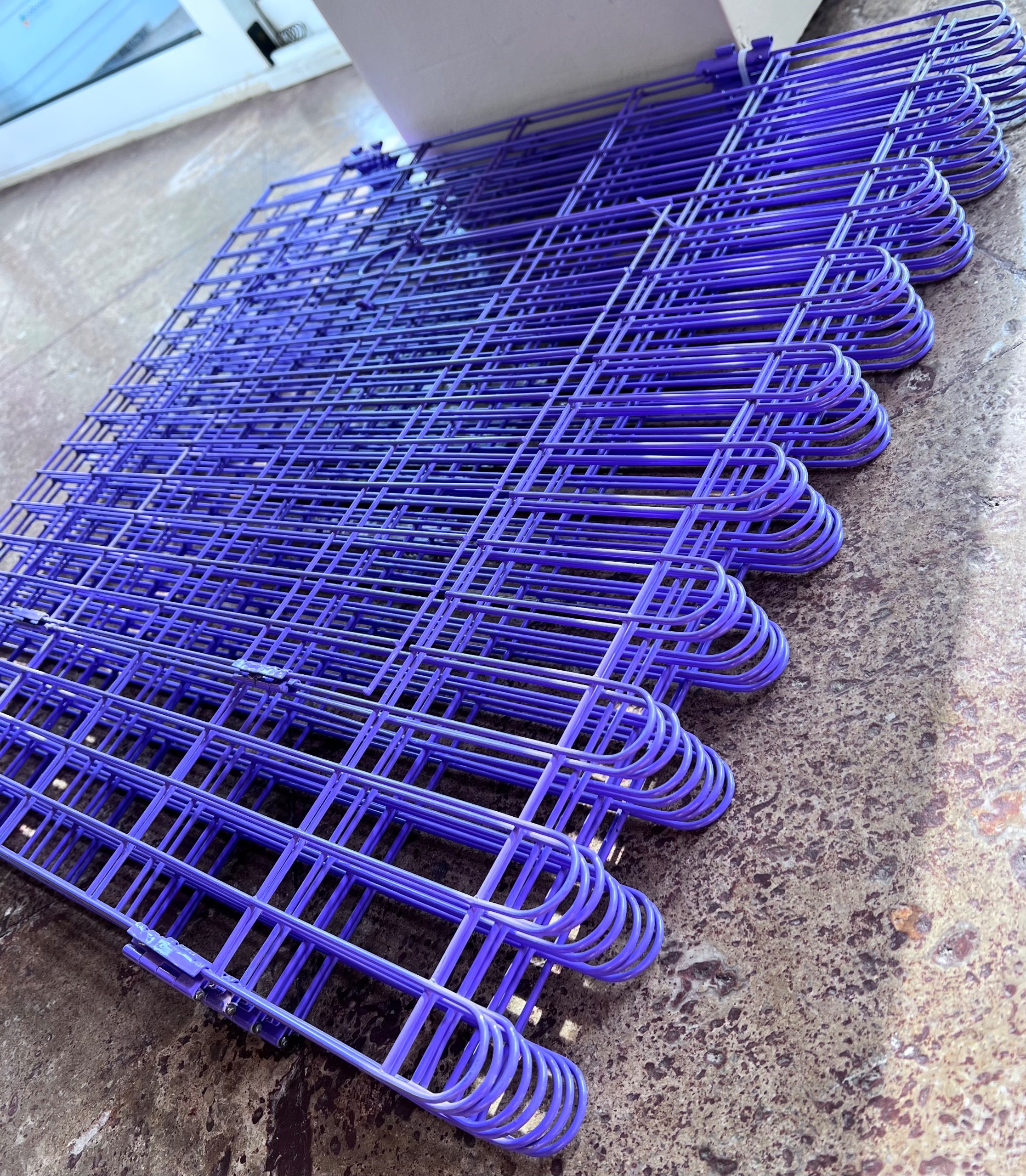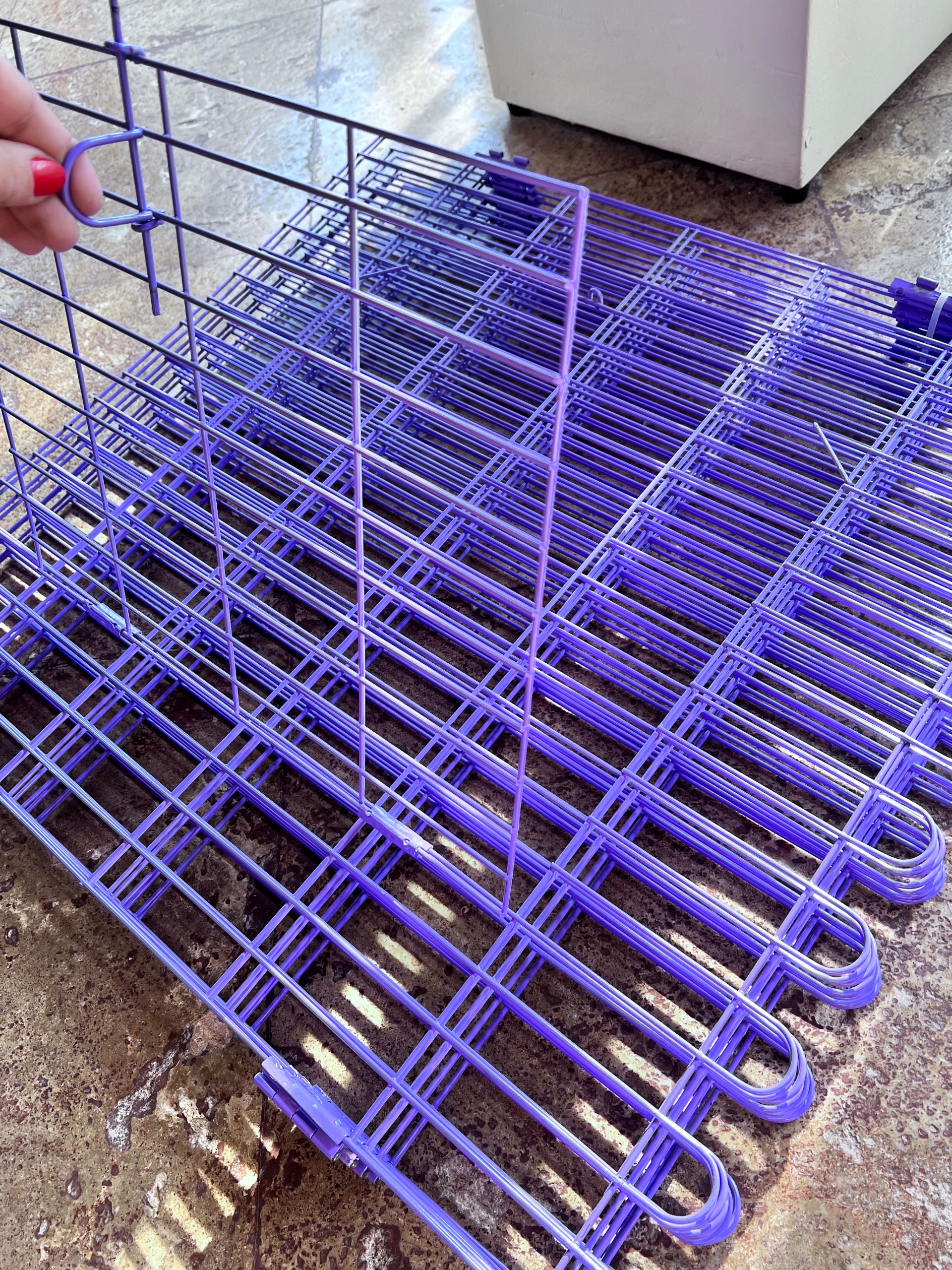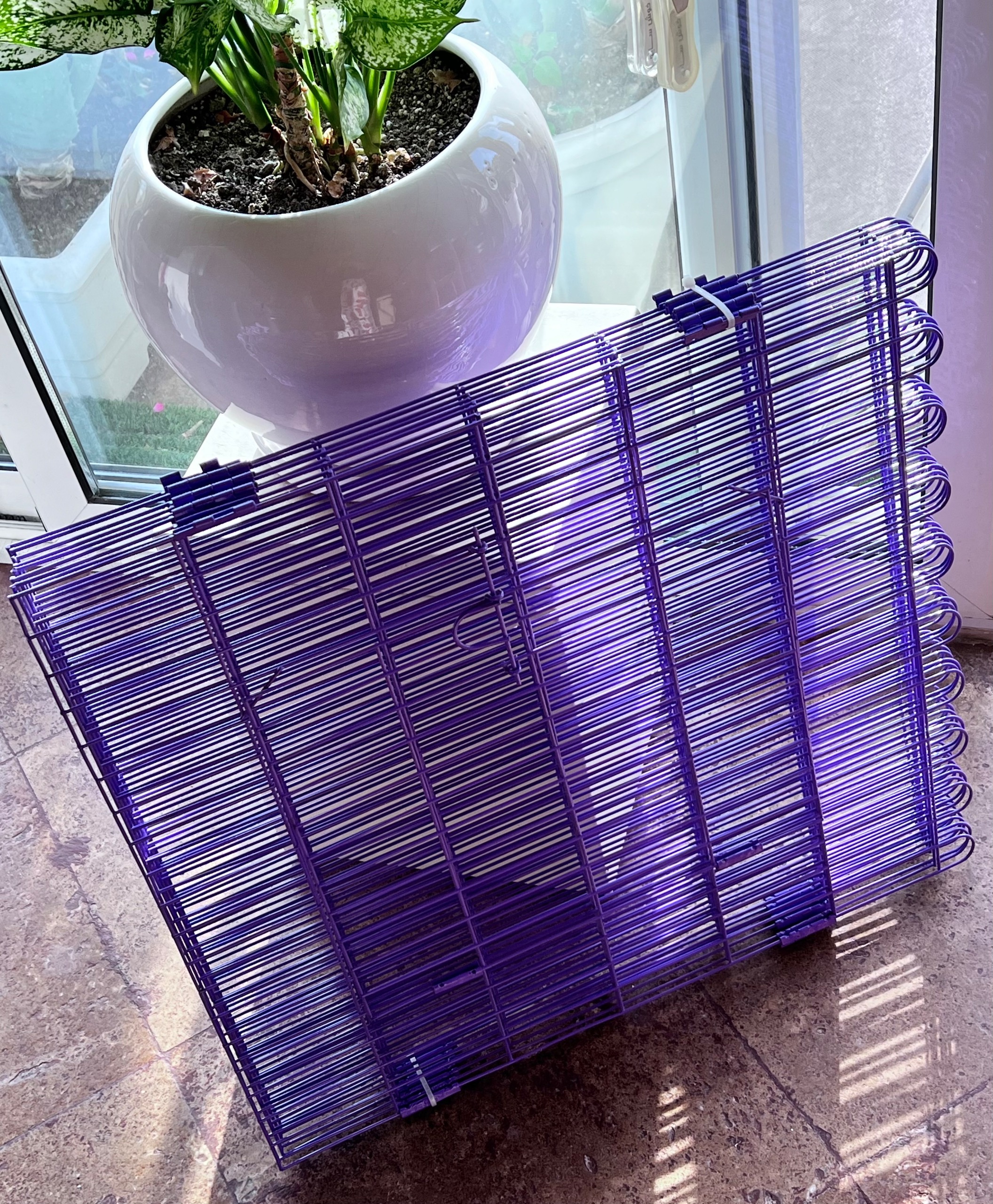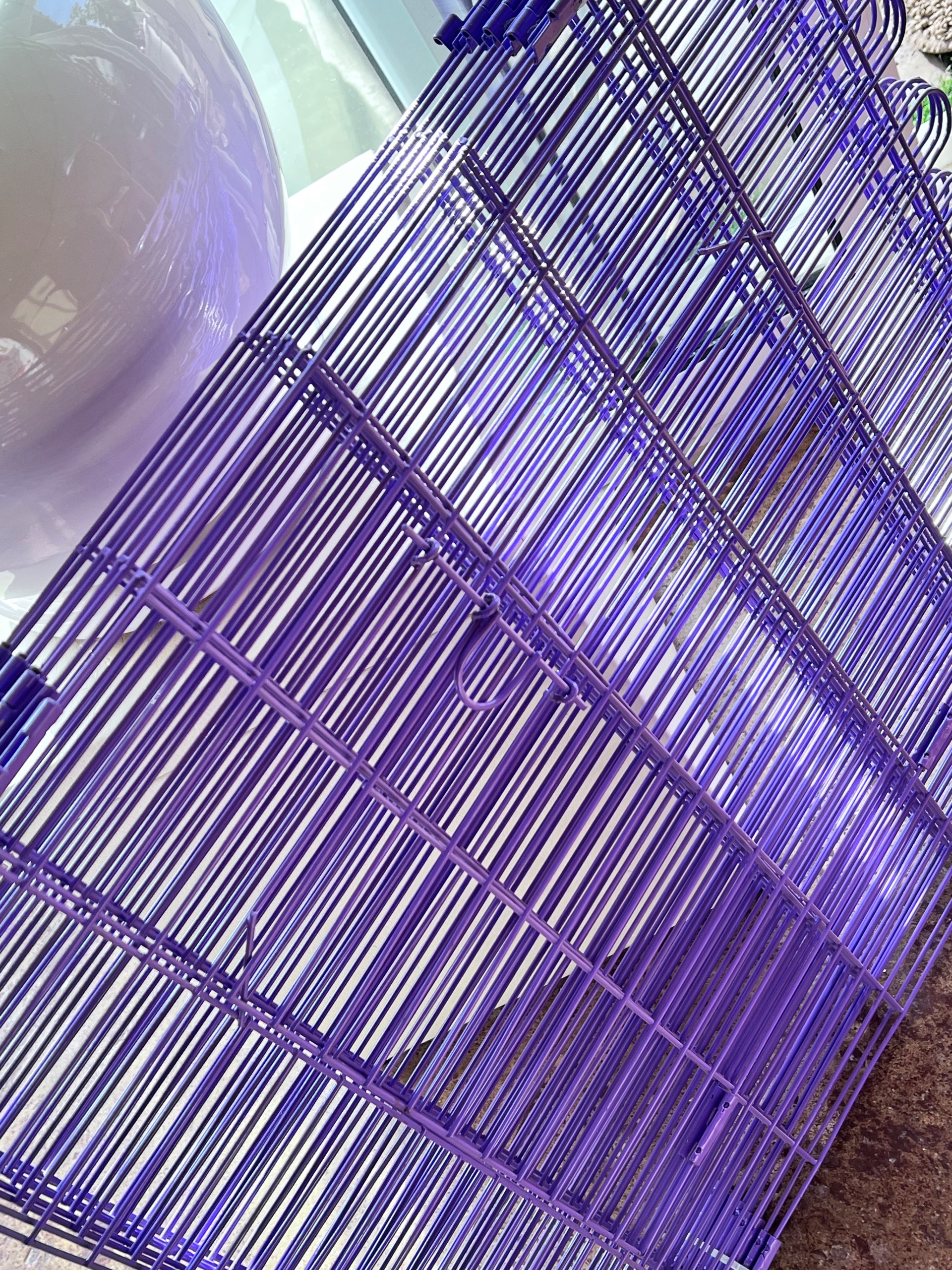 کالا خریداری شد ولی استفاده نشد . جنس فلز ضد زنگ روکش دار . با درگاه قفل دار ورود و خروجی . رنگ بنفش.