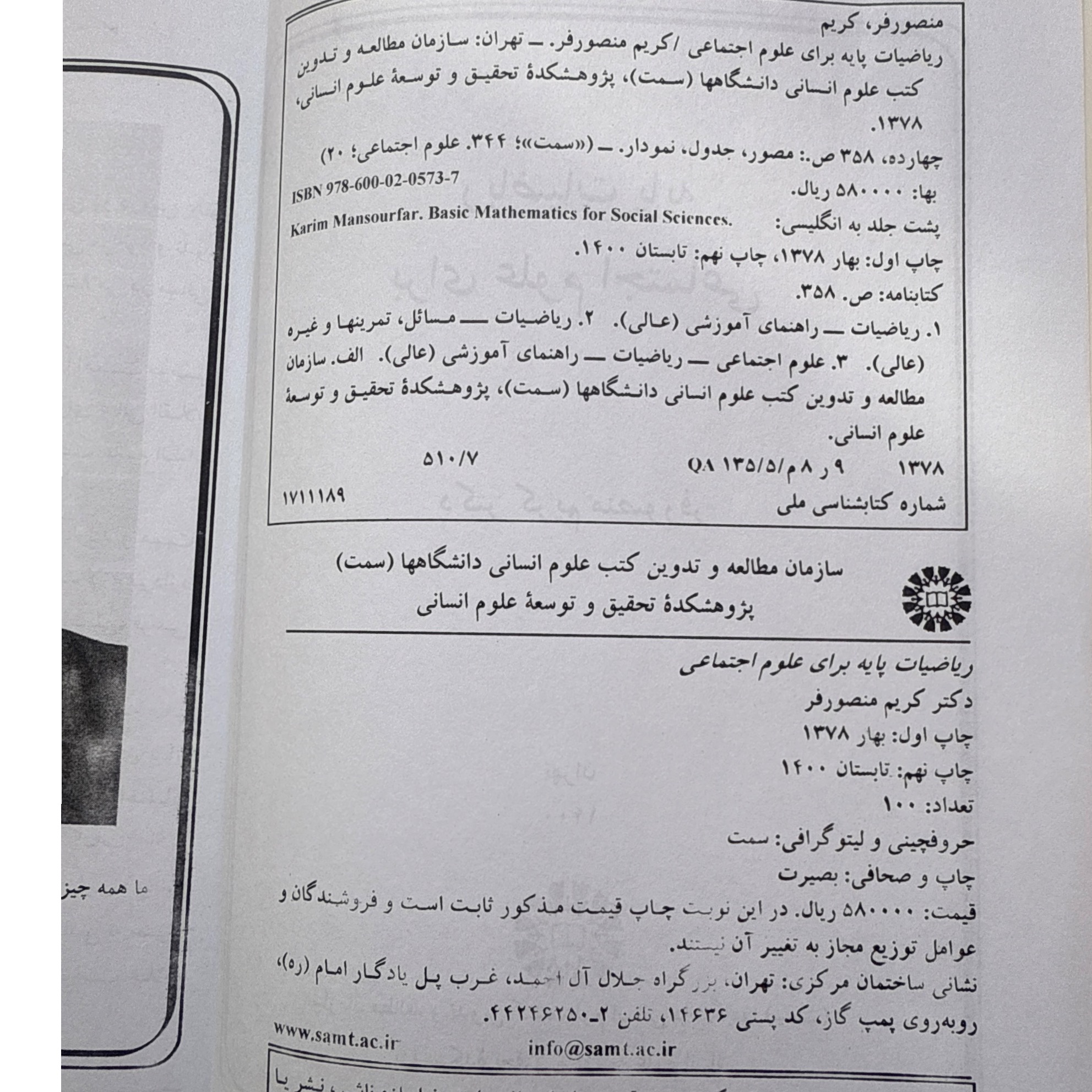 کتاب ریاضیات پایه برای علوم اجتماعی نوشته ی کریم منصورفر که به صورت تمیز و بدون خط خوردگی خدمت شما ارائه می شود .