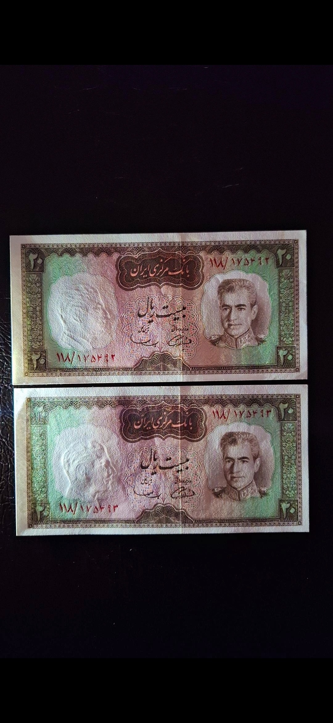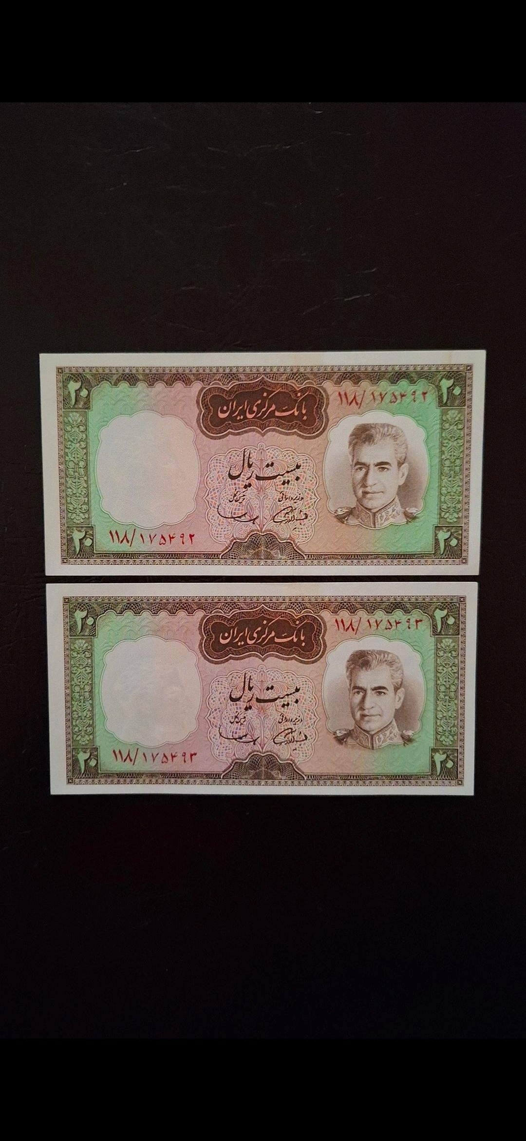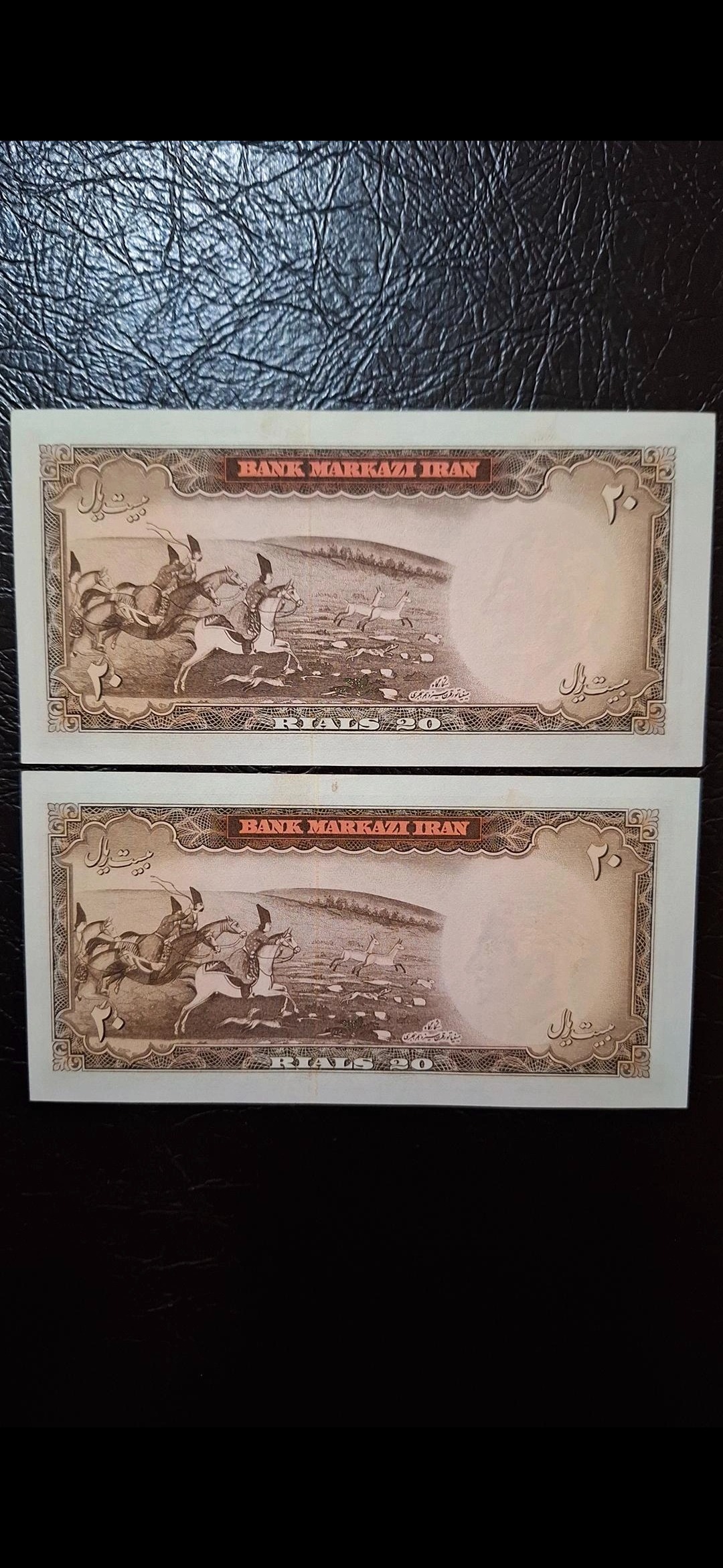 جفت اسکناس بیست ریالی یقه نظامی بانکی شکارگاهی